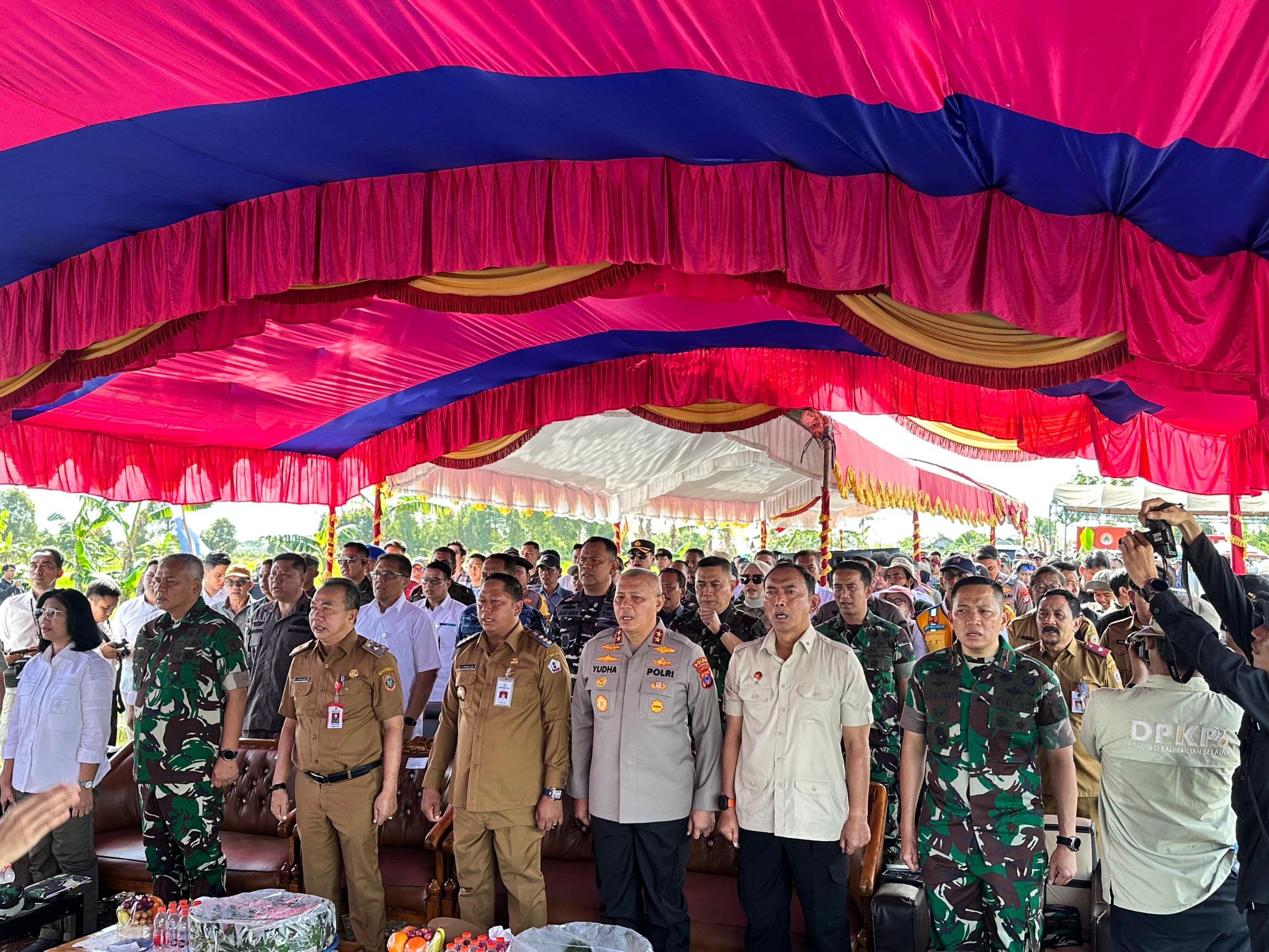 Acara yang berlangsung di lahan pertanian Desa Panca Karya, Kecamatan Alalak ini menjadi bukti nyata sinergi lintas sektor dalam mendukung ketahanan pangan nasional. Kegiatan ini turut dihadiri sejumlah pejabat tinggi pusat dan daerah, antara lain Dirjen Lahan dan Irigasi Pertanian Kementan RI, Ibu Husnain MP., MSc., Ph.D, Staf Khusus Kasad Brigjen TNI Putra Widiastawan, Setda Prov. Kalsel Muhammad Syarifuddin, M.Pd, Kapolda Kalsel, Danrem 101/Ant, Bupati Barito Kuala, serta para tokoh masyarakat dan petani setempat.