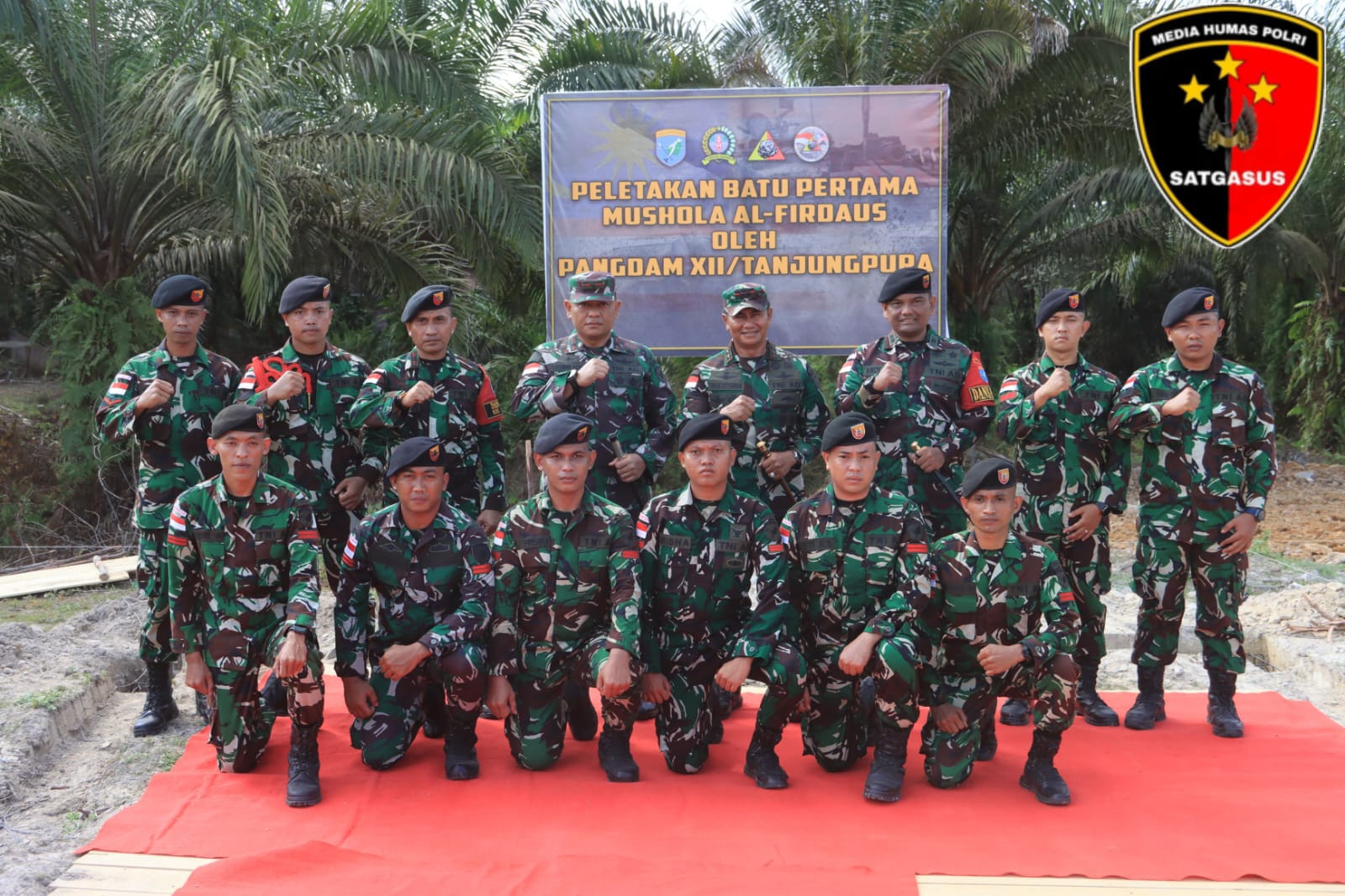 Pangdam XII/Tpr Letakkan Batu Pertama Pembangunan Mushola Pos Pamtas Sungai Daun