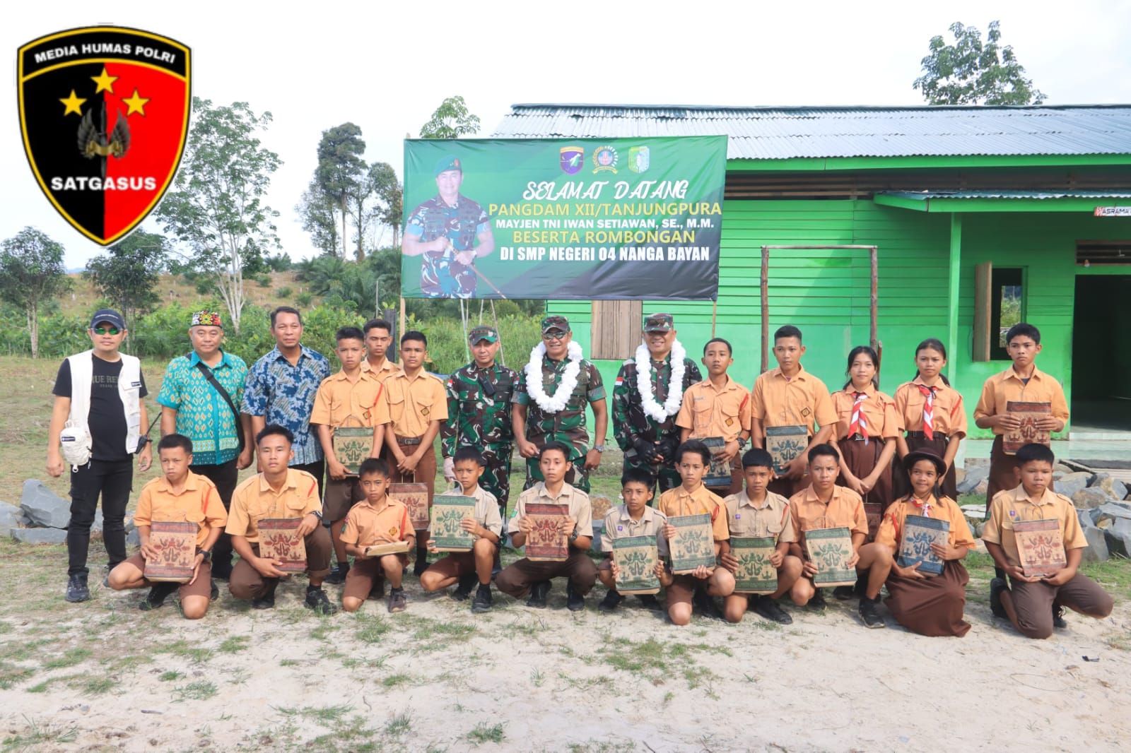 Pangdam XII/Tanjungpura Mayjen TNI Iwan Setiawan, S.E., M.M., meresmikan asrama rumah singgah SMP Negeri 04 Nanga Bayan dan memberikan makan bergizi gratis kepada anak-anak perbatasan di Desa Nanga Bayan dan Desa Belubu, Ketungau Hulu, Kabupaten Sintang, Jumat (01/11/2024).