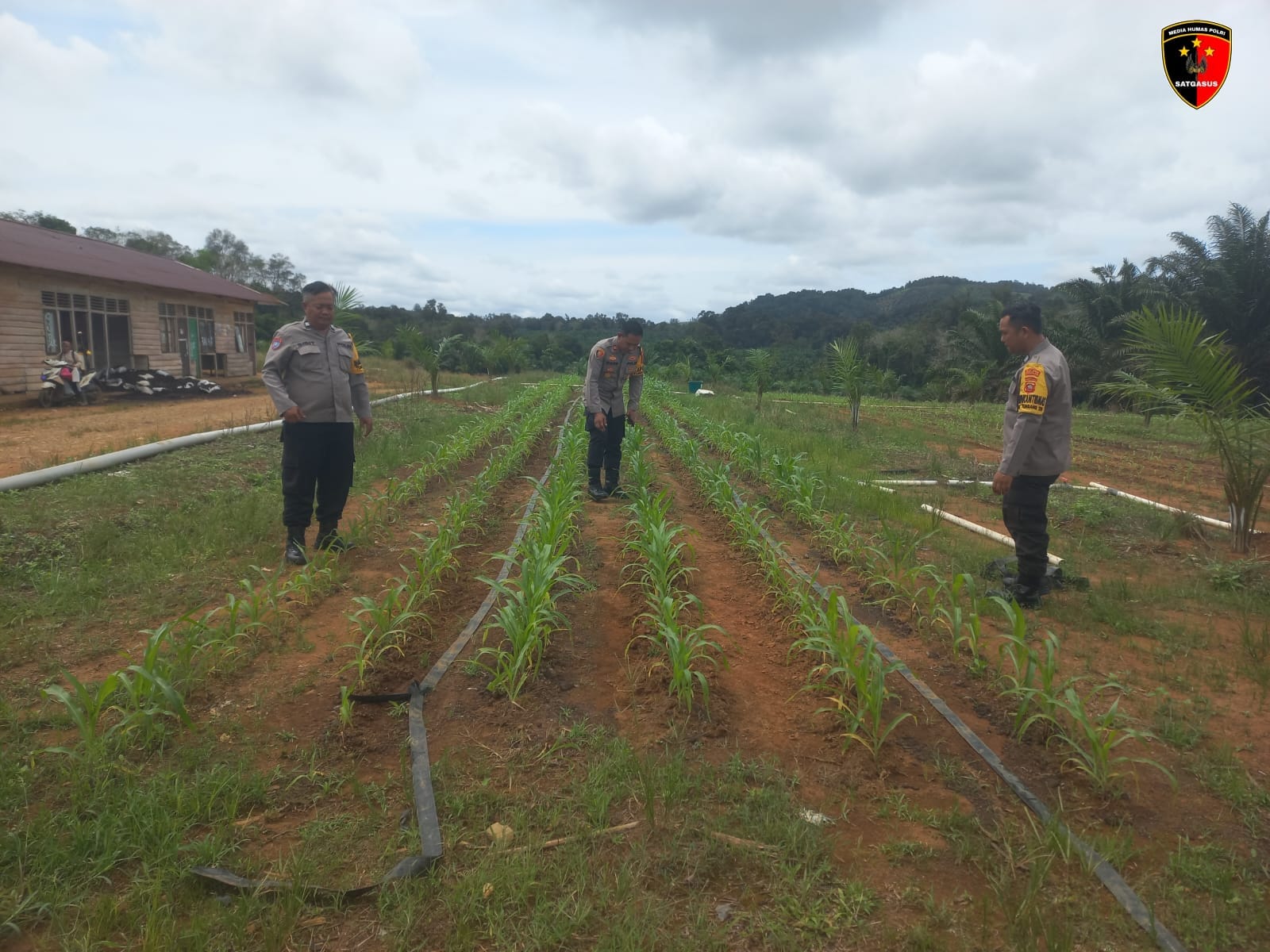 Kapolsek Tumbang Titi, IPTU Made, bersama anggota dan perwakilan PT. LAP, melakukan pemantauan langsung terhadap kondisi tanaman jagung hibrida yang ditanam di antara kebun kelapa sawit. Tumpang sari ini merupakan metode pertanian yang menggabungkan dua jenis tanaman dalam satu lahan yang sama, bertujuan untuk memaksimalkan penggunaan lahan dan meningkatkan produktivitas.
