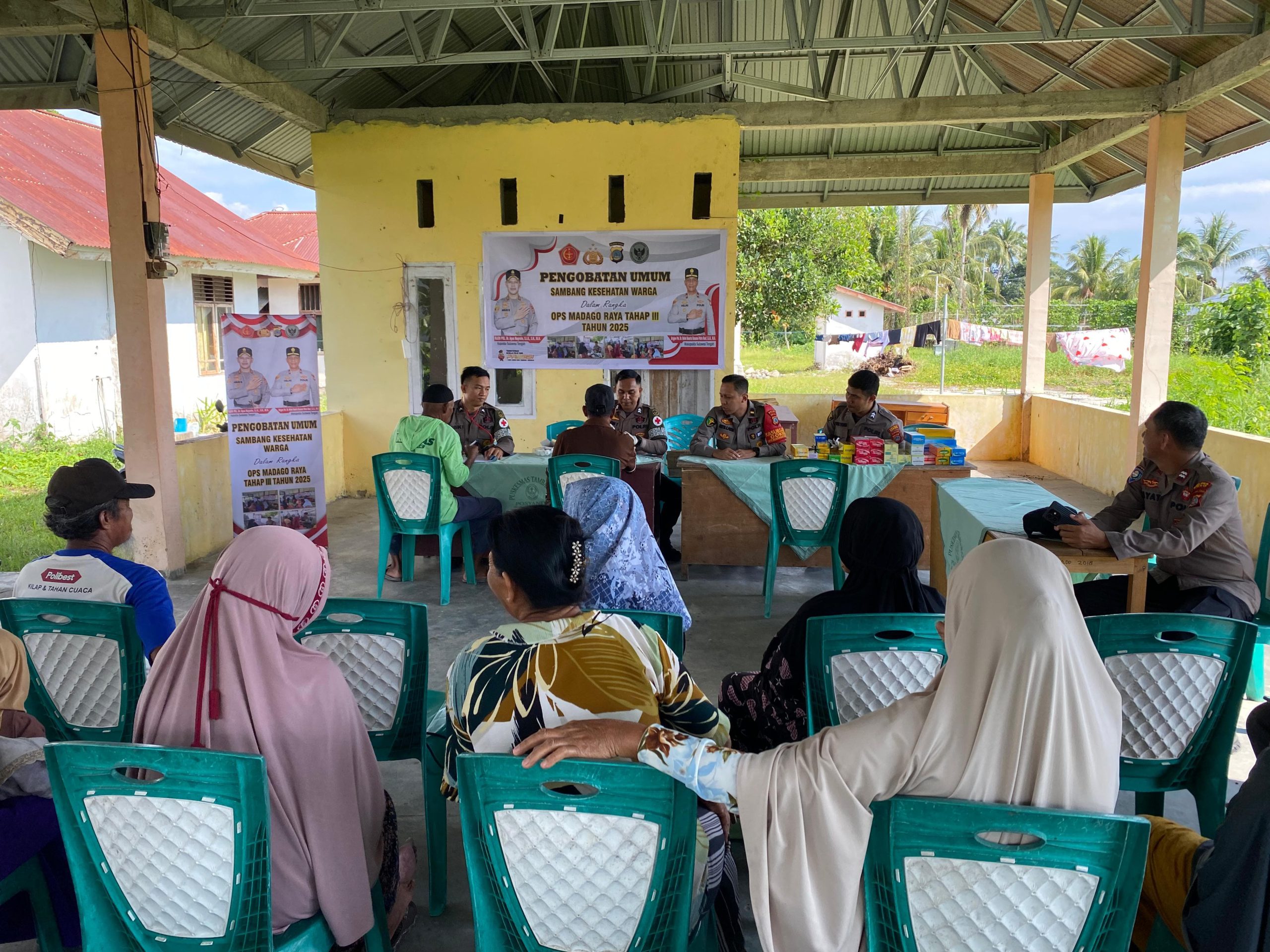 “Pemeriksaan meliputi tekanan darah, suhu tubuh, serta konsultasi kesehatan ringan. Jika ditemukan keluhan tertentu, kami langsung lakukan tindak lanjut atau rujukan ke fasilitas kesehatan terdekat,” ujar Ipda Aditya.
