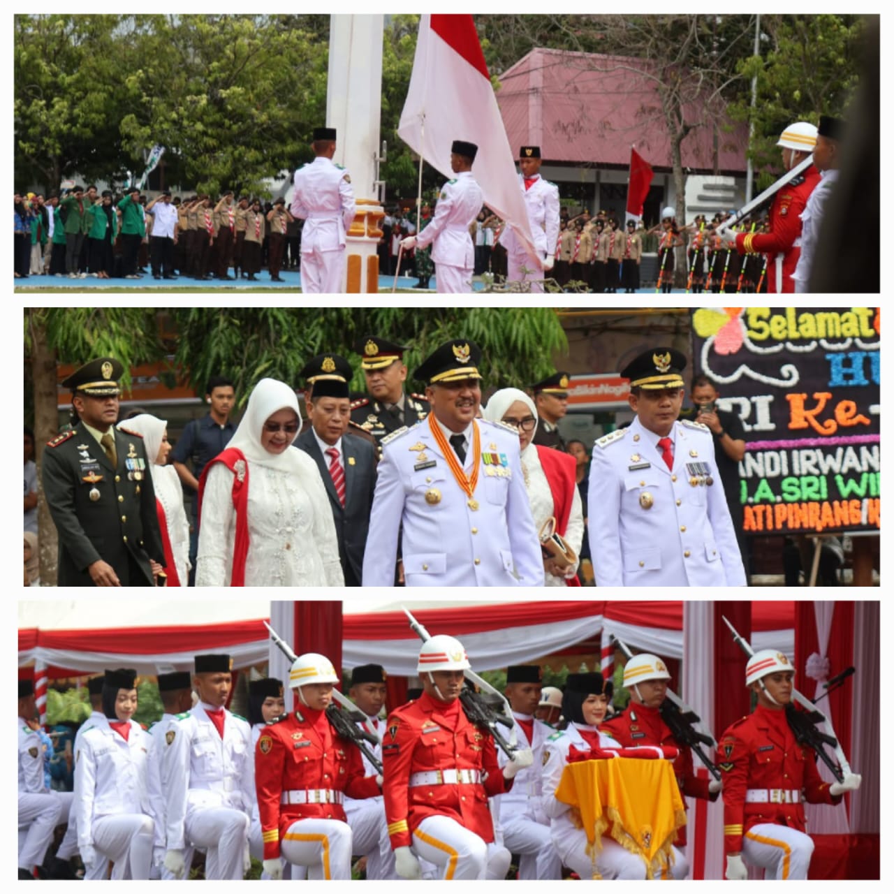 Momen bersejarah itu semakin lengkap dengan derap langkah tegas Pasukan Pengibar Bendera Pusaka (Paskibraka) Kabupaten Pinrang yang sukses mengibarkan Sang Merah Putih dengan penuh kehormatan.
