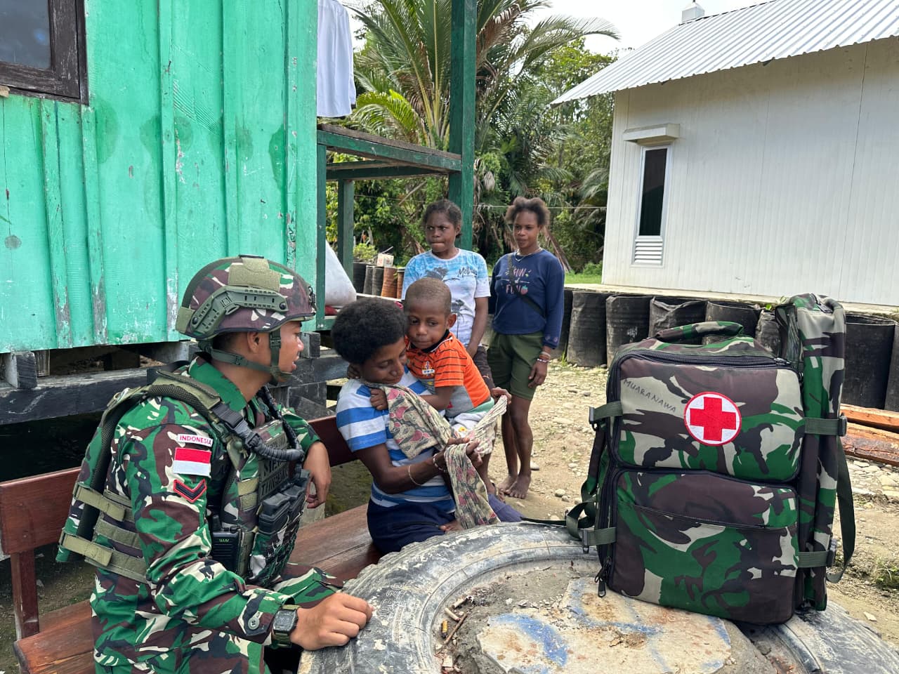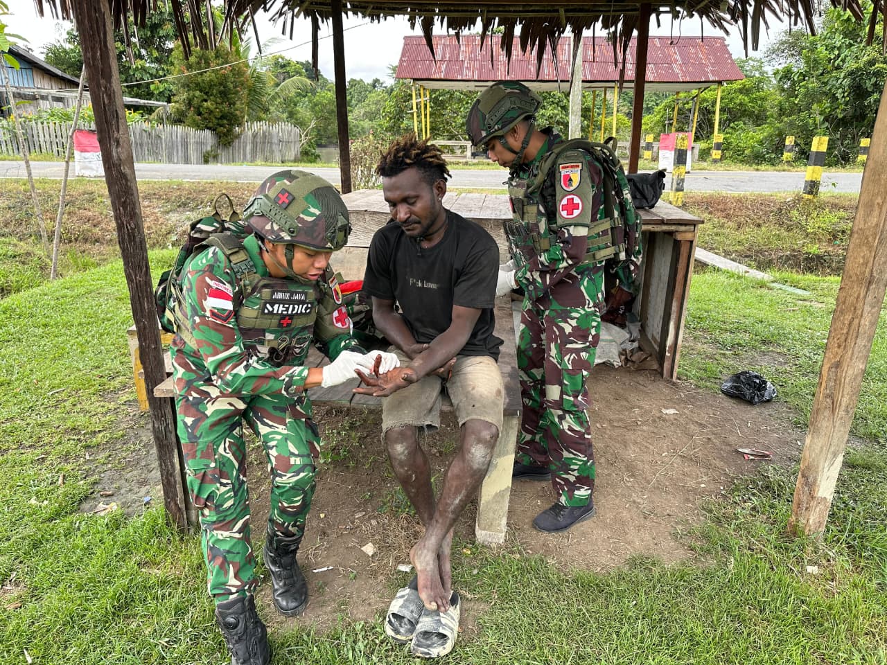 “Cintai Kesehatan TNI di Papua” adalah program dan kegiatan Bhakti sosial Kesehatan yang dilaksanakan oleh TNI untuk membantu masyarakat di daerah pedalaman Papua, yang seringkali memiliki akses terbatas terhadap layanan kesehatan di Kampung Muaranawa, Distrik Airu, Kab. Jayapura Papua. (24/09/2025).