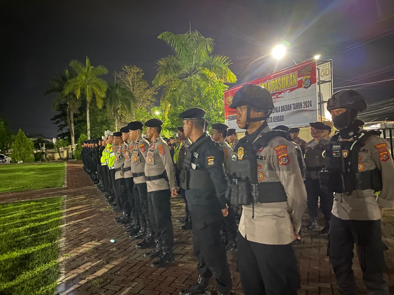 Rabu malam, 27 November 2024, pukul 20.30 Wita, personel Satbrimobda Sultra bersama aparat Polresta Kendari melaksanakan patroli gabungan pasca pencoblosan Pilkada 2024. Patroli diawali dengan apel yang dipimpin oleh Kabag Ops Polresta Kendari, AKP Picha Armedi, S.I.K., M.H., M.A., di Markas Polresta Kendari.