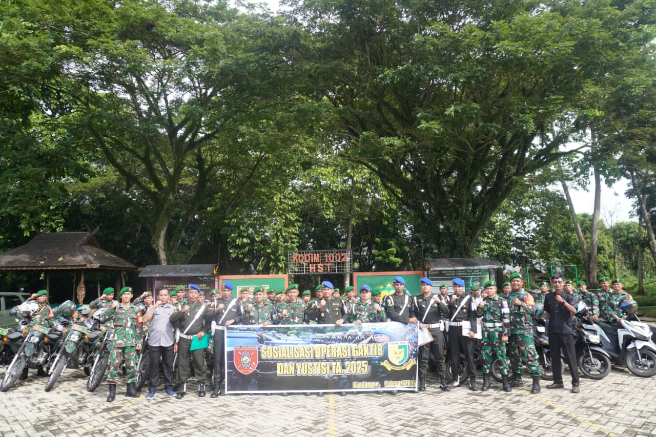 HST–Kodim 1002/HST bekerja sama dengan Sub Denpom VI/2-1 Kandangan menggelar kegiatan sosialisasi Operasi Penegakan Ketertiban (Ops Gaktib) dan Yustisi Polisi Militer TNI AD Tahun 2025 pada hari Kamis, 13 Februari 2025. Kegiatan ini diikuti oleh sekitar 60 anggota Kodim 1002/HST dan PNS.