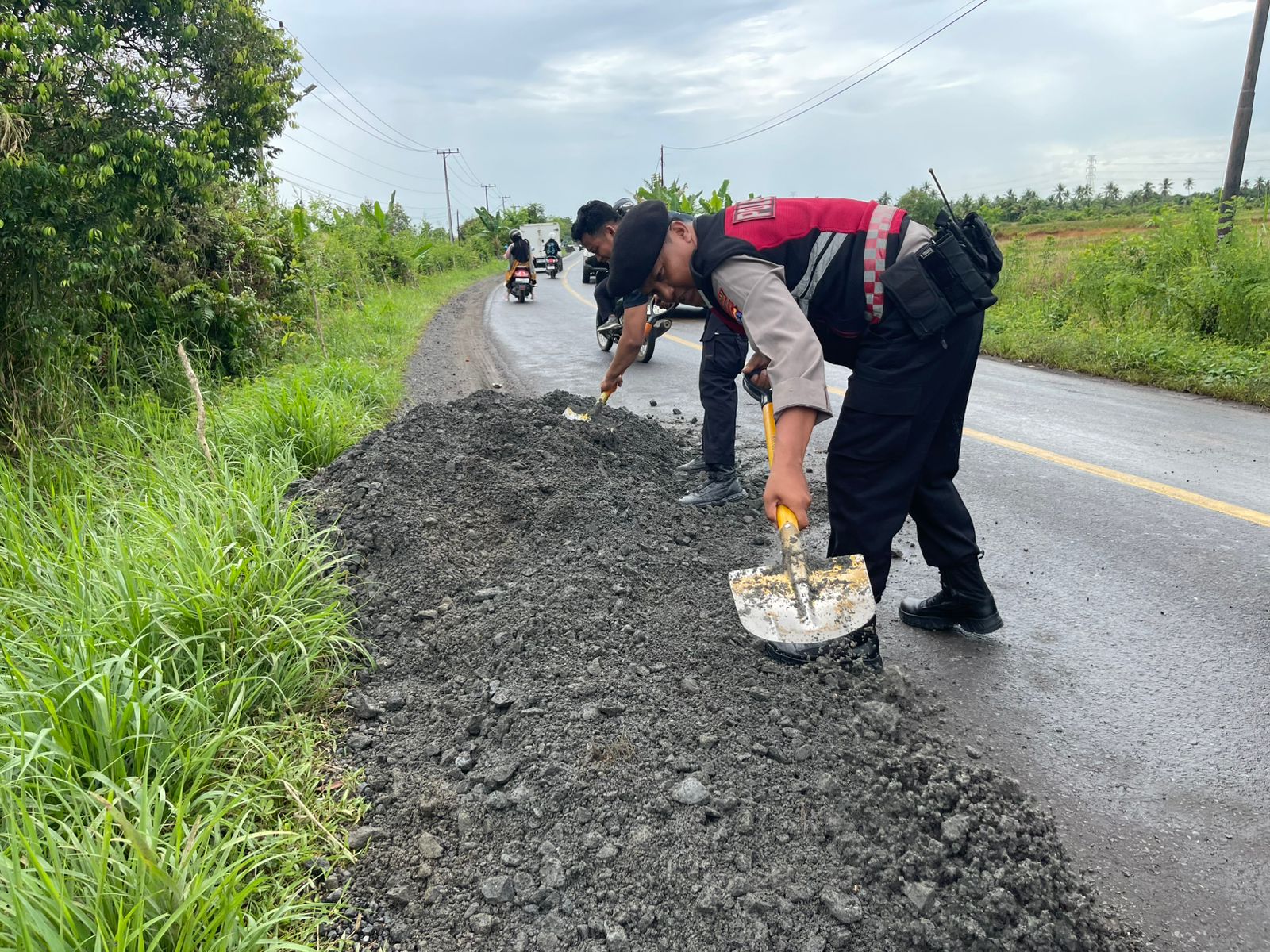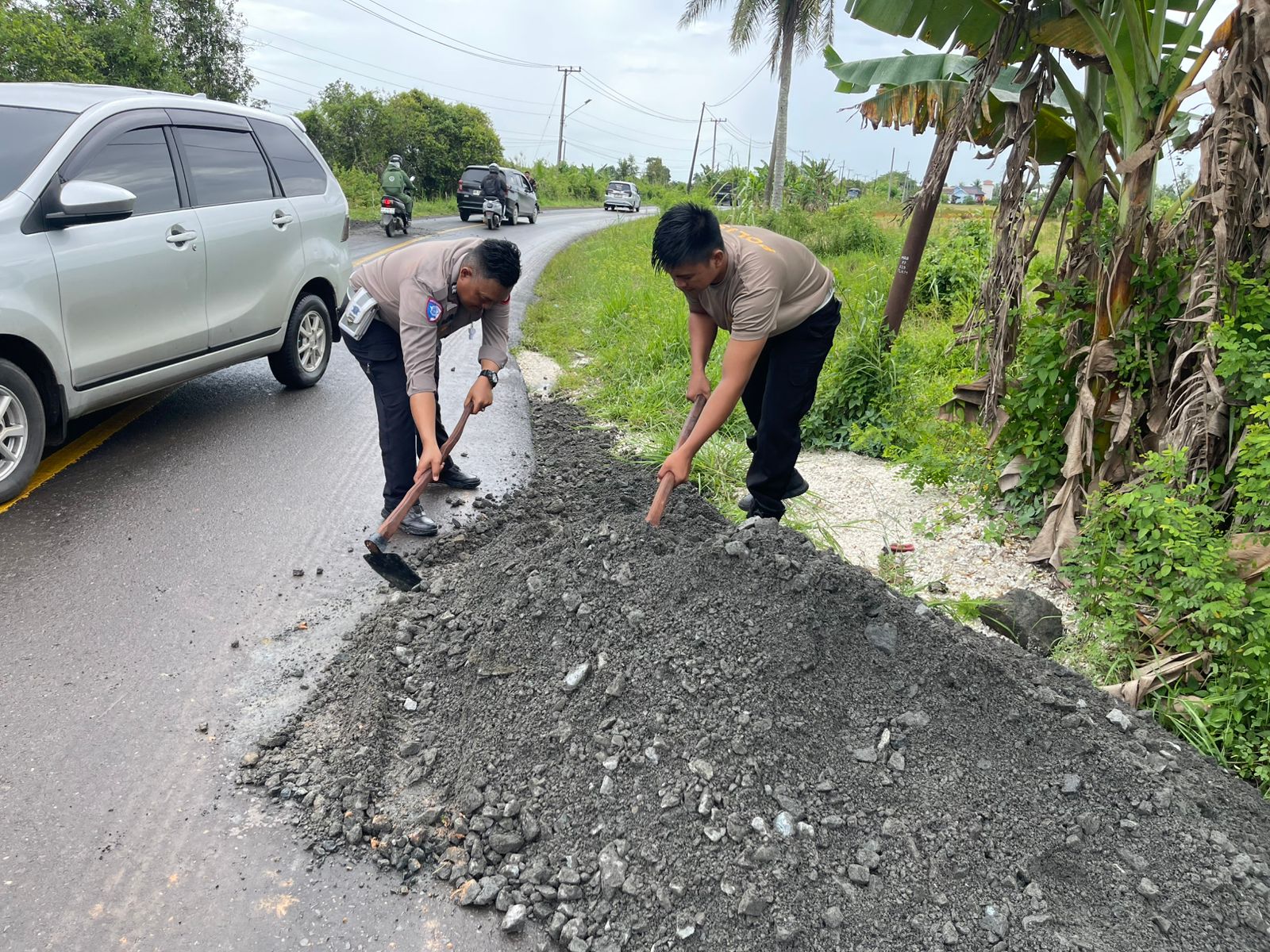 Selain melakukan perbaikan jalan, Kasat Lantas Polres Batola Akp Andre juga mengimbau masyarakat untuk lebih berhati-hati dalam berkendara di musim hujan.