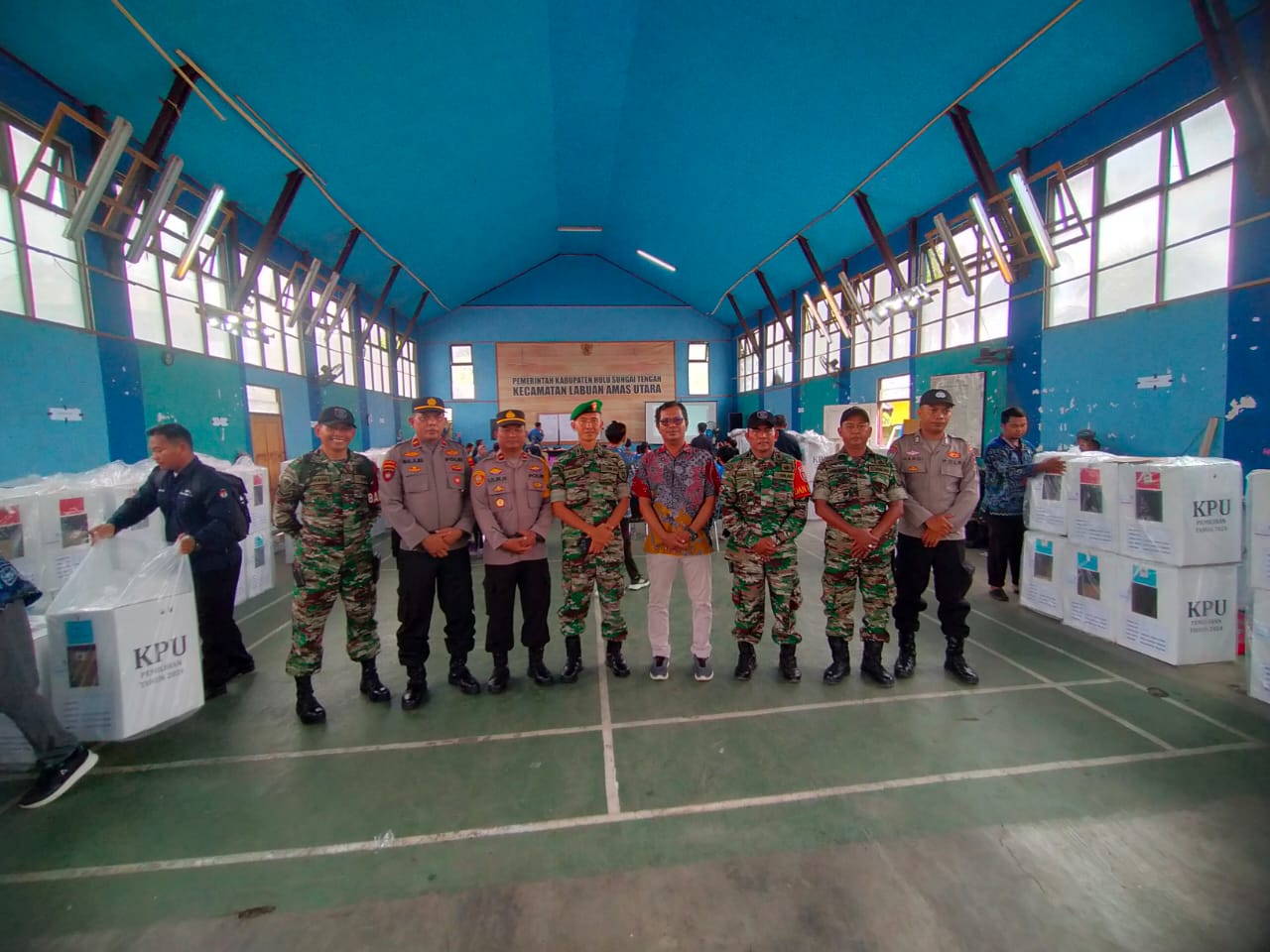 Kepala Staf Kod im 1002/HST, Mayor Inf Moh. Alip Suroso, melaksanakan pemantauan Rapat Pleno Terbuka Rekapitulasi Hasil Penghitungan Perolehan Suara untuk Pemilihan Gubernur dan Wakil Gubernur Kalimantan Selatan serta Bupati dan Wakil Bupati Hulu Sungai Tengah Tahun 2024 di tingkat kecamatan. Jum’at (29/11).