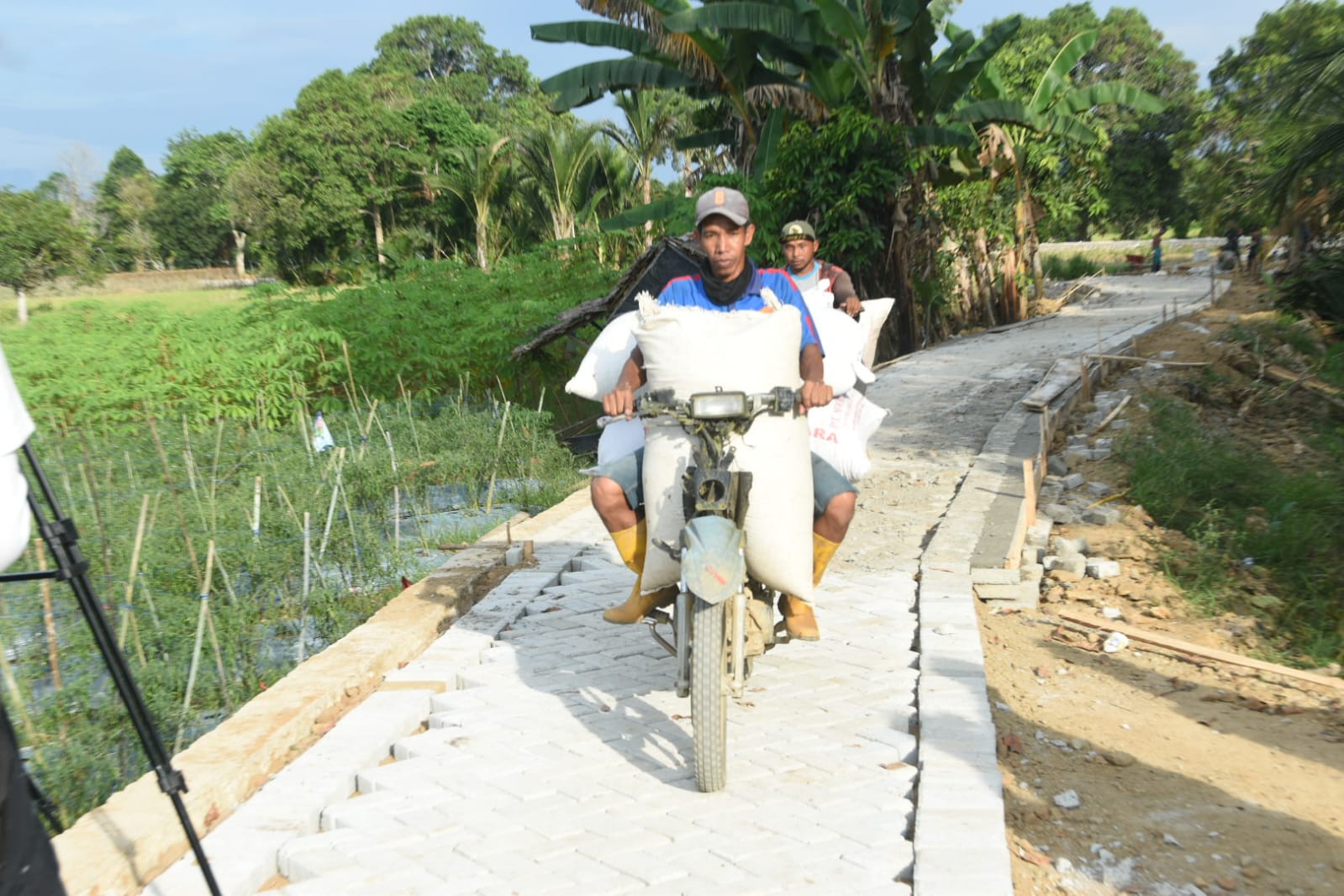 Meskipun pembangunan jalan sepanjang 1030 meter di Desa Pengambau Hilir Luar, Kecamatan Haruyan belum sepenuhnya rampung, manfaatnya sudah dirasakan secara nyata oleh warga setempat.