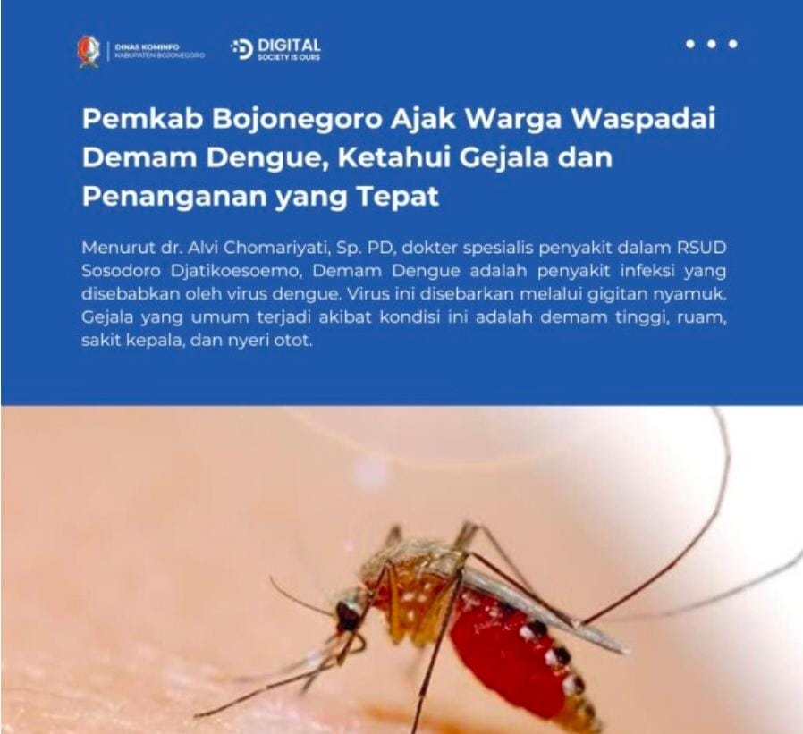 Pemkab Bojonegoro melalui Dinas Kesehatan mengajak masyarakat untuk mewaspadai Demam Dengue. Ajakan ini disampaikan lewat program SAPA! (Selamat Pagi) Malowopati FM, Jumat (20/06/2025).