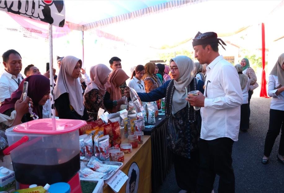Para pelaku UMKM Bojonegoro terus didorong untuk makin berkembang dengan adanya aplikasi e-Bakul, yang di-launching Rabu (27/8/2025) di Pendopo Malowopati. Sistem e-Bakul dibuat oleh Pemkab Bojonegoro untuk mendorong kemandirian, menarik jiwa anak muda berwirausaha dan meningkatkan ekonomi masyarakat melalui kewajiban para ASN berbelanja ke pelaku usaha kecil.