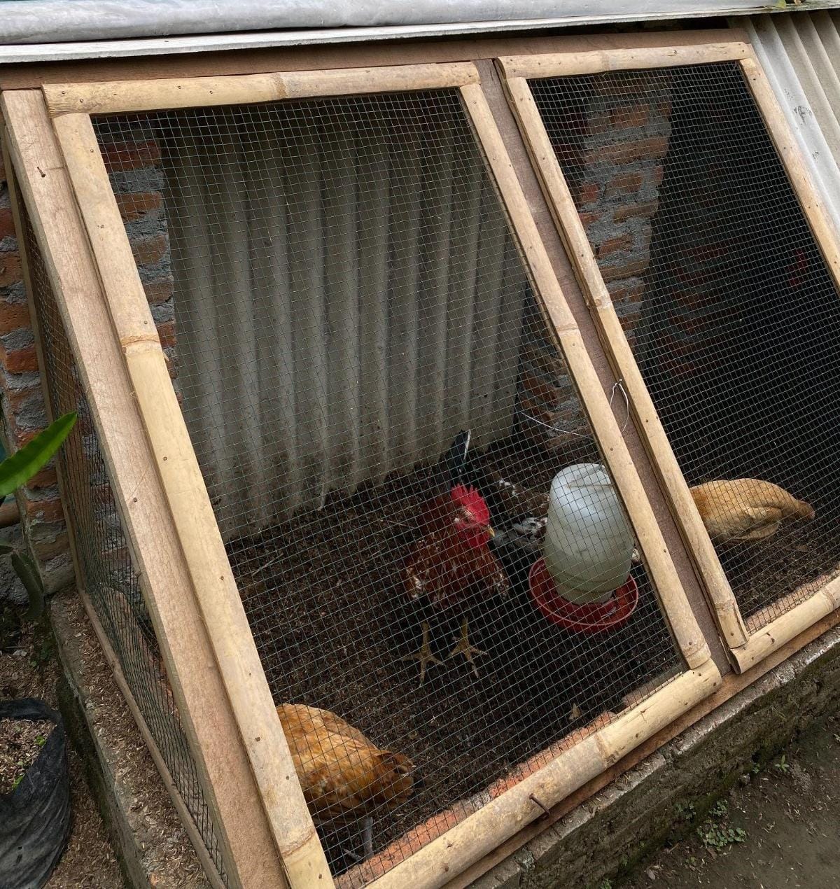 Kandang yang digunakan dalam program ini berukuran 3,5 m x 1 m x 1 m dan dirancang untuk menampung lima ekor ayam. Yakni terdiri dari empat betina dan satu jantan. Desain kandang ini memungkinkan sirkulasi udara yang baik serta memberikan ruang yang cukup bagi ayam untuk bergerak, sehingga dapat meningkatkan kesehatan dan produktivitasnya.