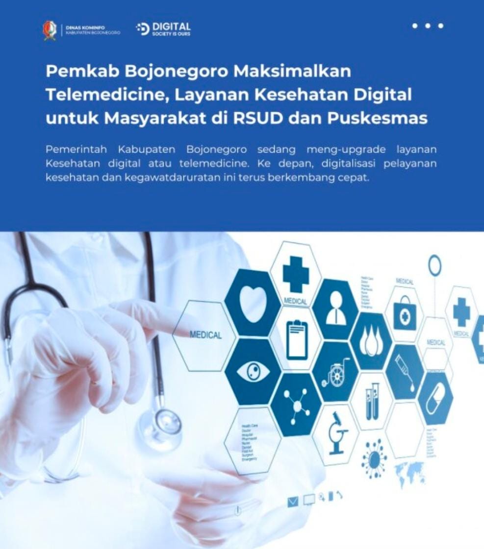 Pemerintah Kabupaten Bojonegoro sedang meng-upgrade layanan Kesehatan digital atau telemedicine. Ke depan, digitalisasi pelayanan kesehatan dan kegawatdaruratan ini terus berkembang cepat.