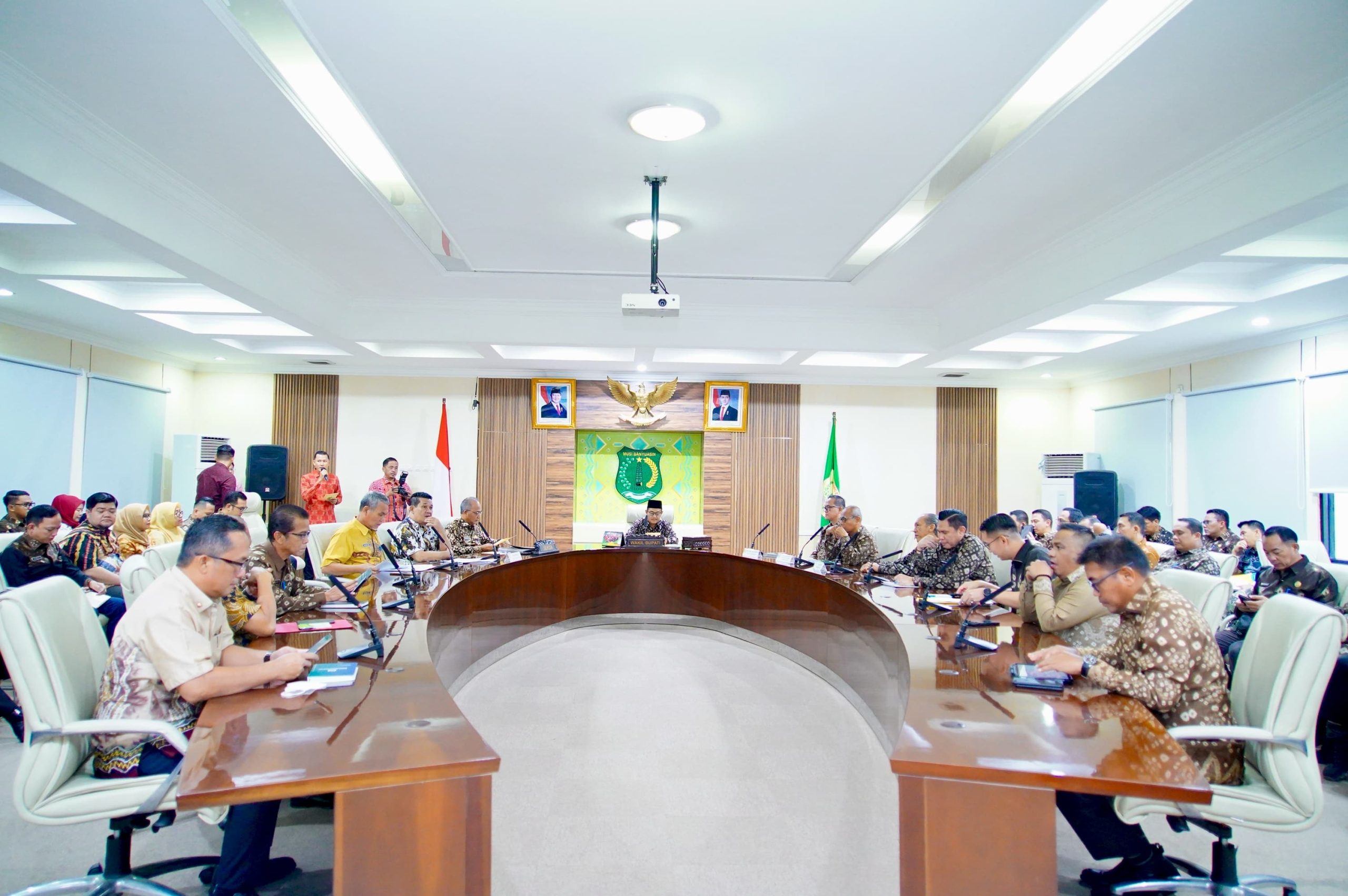 Rapat yang berlangsung di ruang rapat Serasan Sekate pada Jumat (7/3/2025), dipimpin oleh Bupati Muba H. M. Toha yang diwakili oleh Wabup Rohman. Acara ini dihadiri oleh Sekretaris Daerah Dr. H. Apriyadi Mahmud, M.Si., para asisten, staf ahli bupati, kepala Organisasi Perangkat Daerah (OPD), dan camat se-Kabupaten Muba.
