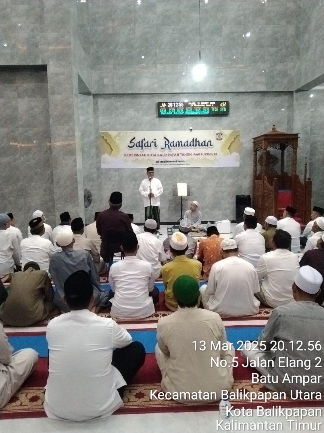 Pemerintah Kota Balikpapan dalam kegiatan Safari Ramadhan yang telah memasuki hari ke empat dalam kunjungannya ke beberapa Masjid yang ada di Kota Balikpapan, untuk Hari ini kamis ( 13/ 3 / 2025 ) telah mengunjungi Masjid Nurul Falah yang berada di kelurahan Batu Ampar kecamatan Balikpapan Utara.