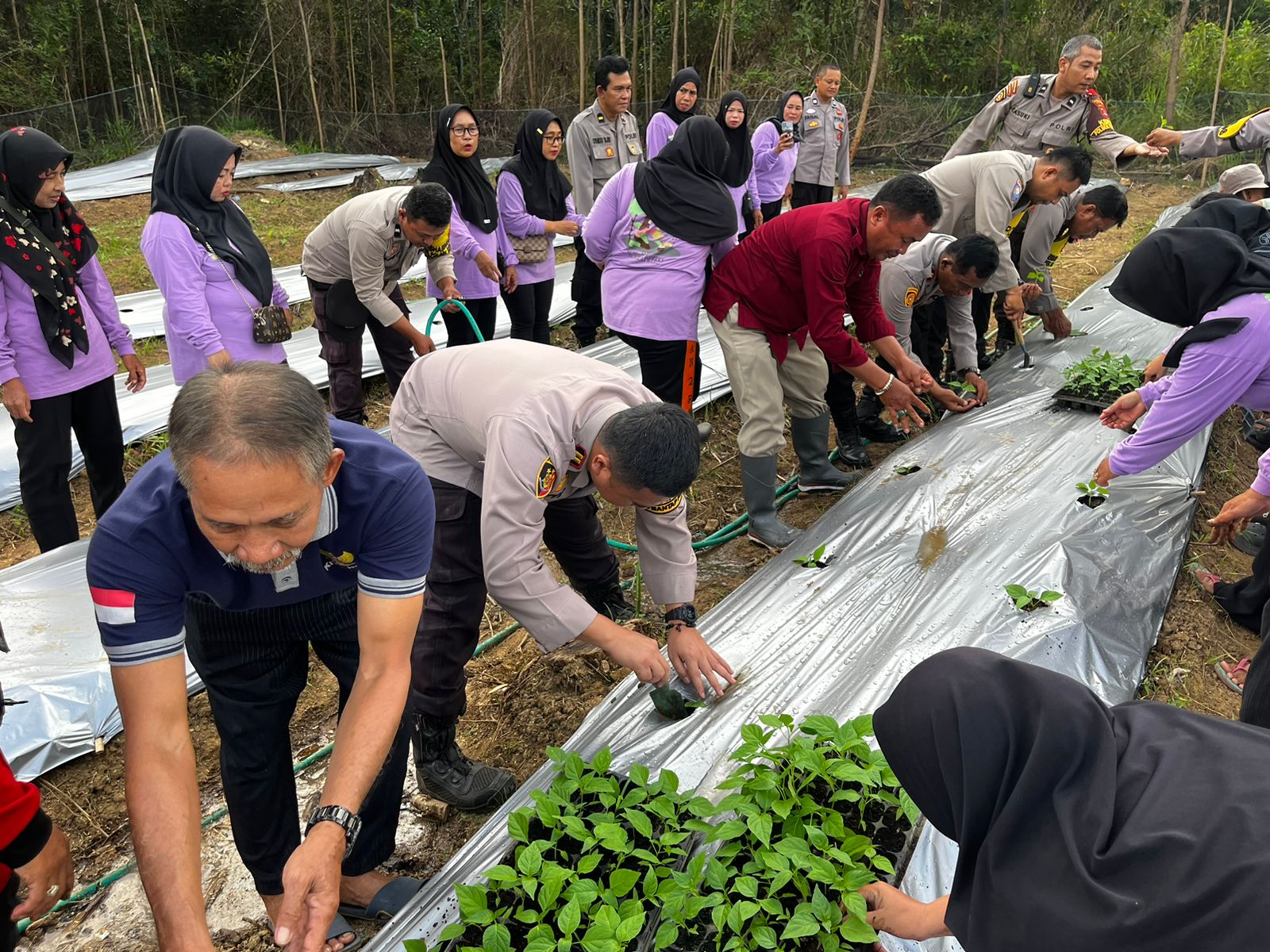Rangkaian acara diawali dengan sambutan oleh Kepala Desa Sungkai Baru, diikuti dengan sambutan dari Kapolsek Simpang Empat yang menyatakan dukungan penuh pihak kepolisian terhadap program pemerintah di bidang pertanian. Kegiatan utama, yaitu penanaman bibit cabai secara simbolis, dilakukan oleh Kapolsek Simpang Empat bersama aparat desa dan anggota KWT, disusul dengan diskusi bersama para pekebun mengenai tantangan dan peluang dalam meningkatkan hasil pertanian di wilayah tersebut. Acara ditutup dengan doa bersama demi keberhasilan dan keberkahan hasil panen.