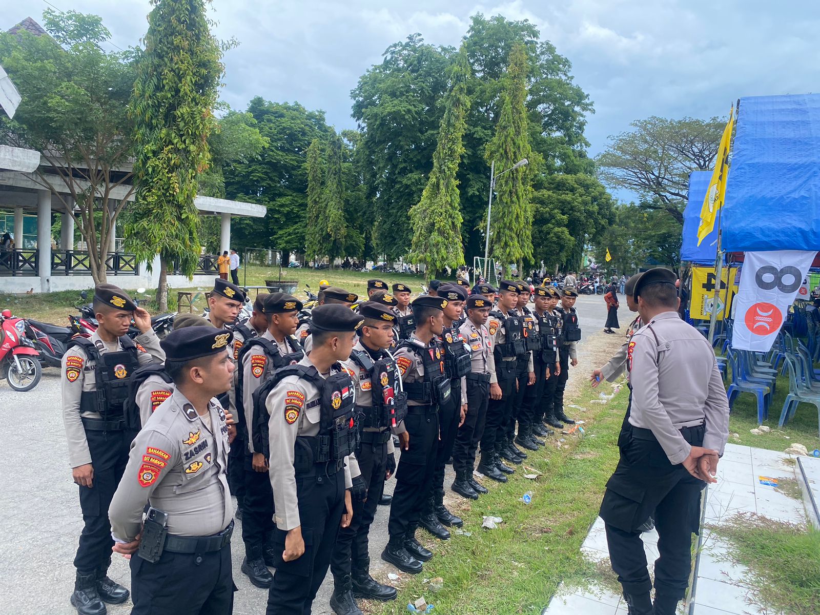 Apel dimulai pada pukul 14.00 WITA hingga selesai, dengan melibatkan 36 personel yang hadir lengkap. Tim pengamanan bertugas memastikan kelancaran kegiatan kampanye, mendukung pelaksanaan tahapan pemilu, dan menjamin keamanan masyarakat selama acara berlangsung.