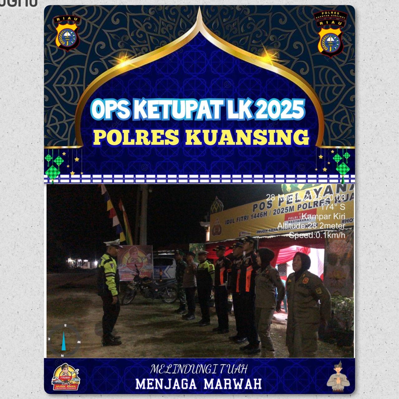 Kapolres Kuansing AKBP Angga F. Herlambang, S.I.K., S.H. melalui Ps. Kapolsek Singingi Hilir IPTU Alferdo Krisnata Kaban, S.H. menyampaikan Apel tersebut diikuti oleh personel gabungan dari berbagai instansi yang turut serta dalam pengamanan dan pelayanan di Pos PAM, dengan rincian sebagai berikut Polri: 10 personel, TNI: 1 personel, Dinas Kesehatan (Dinkes): 2 personel, Dinas Perhubungan (Dishub): 3 personel, Satuan Polisi Pamong Praja (Sat Pol PP): 2 personel, dan Badan Penanggulangan Bencana Daerah (BPBD).