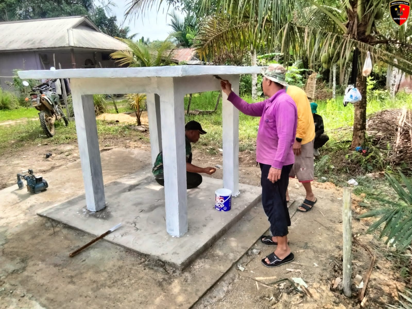 Sertu Jatendra juga menyampaikan kegiatan tersebut dari pembuatan rangka tandon sampai sekarang tahap pengecatan di bantu masyarakat saling bergotong royong dalam pengerjaannya.