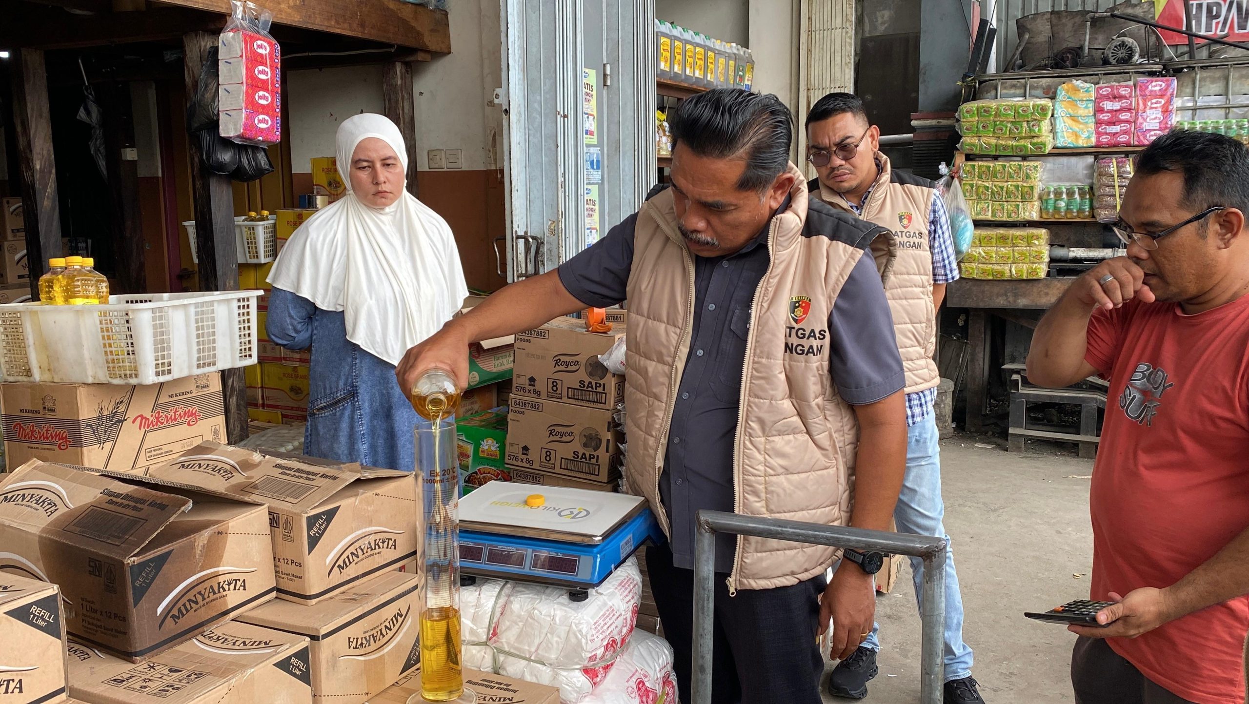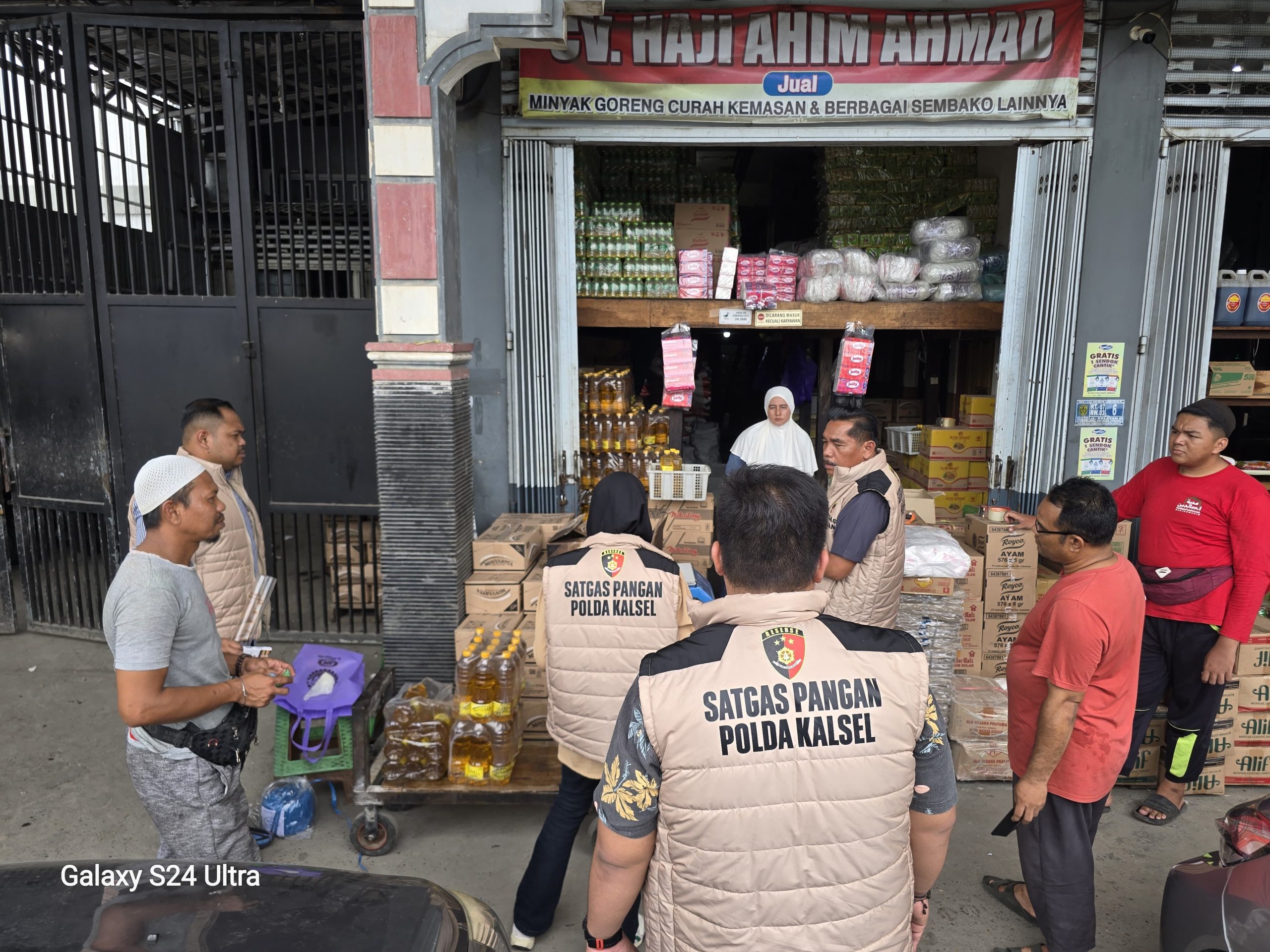 Satuan Tugas (Satgas) Pangan Direktorat Reserse Kriminal Khusus (Ditreskrimsus) Polda Kalimantan Selatan (Kalsel) melakukan inspeksi mendadak terhadap produk minyak goreng merek Minyakita di Toko Haji Ahim, Banjarmasin, Kamis (8/5/2025). Pengecekan ini dilakukan untuk memastikan ketersediaan dan kelaikan produk minyak goreng curah bersubsidi tersebut di pasaran.