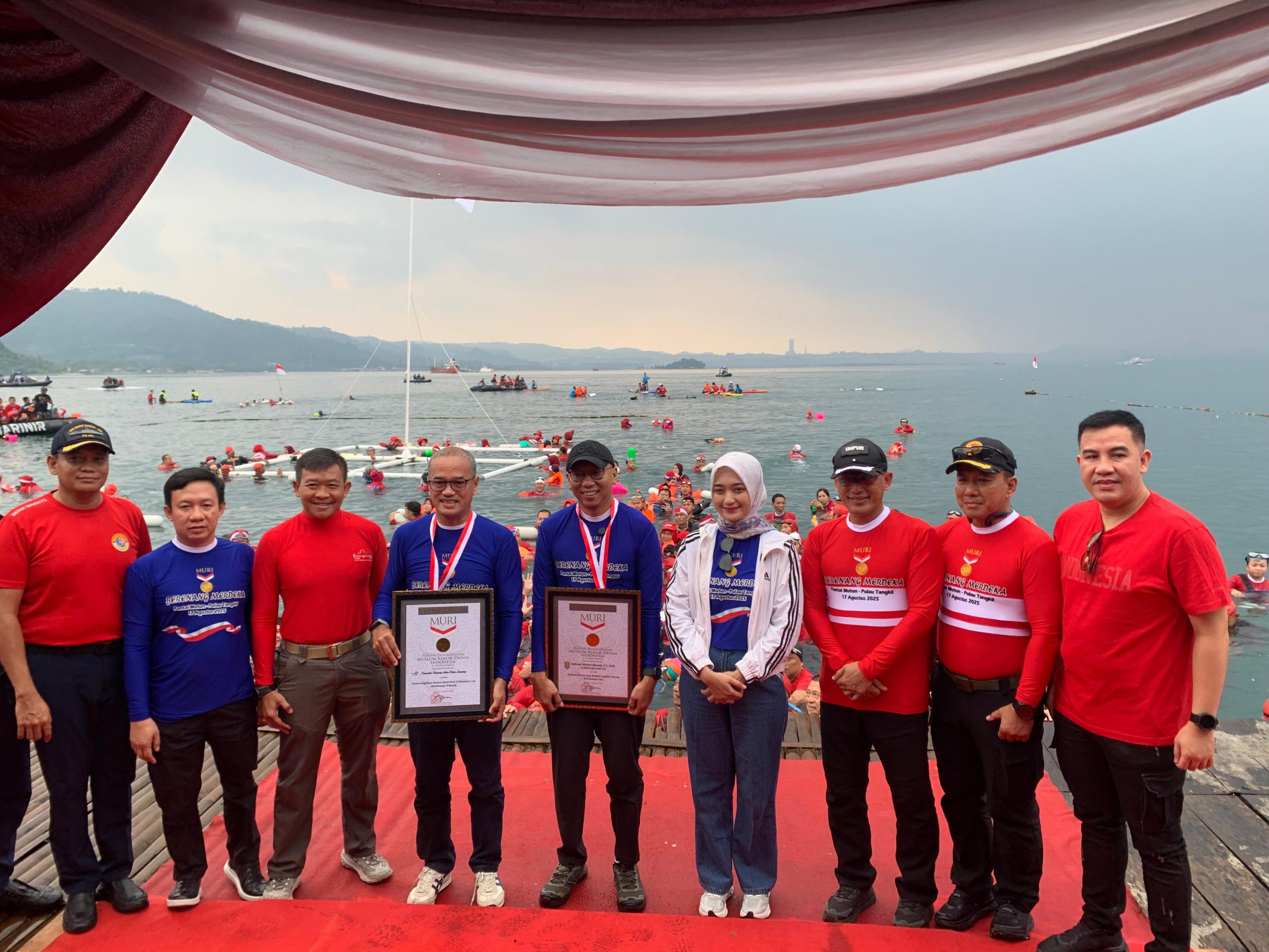 Sebuah momen bersejarah tercipta di perairan Pantai Mutun, Kecamatan Padang Cermin, Kabupaten Pesawaran. Sebanyak 565 perenang berhasil memecahkan rekor Museum Rekor Dunia Indonesia (MURI) lewat kegiatan Upacara Bendera Merah Putih di Permukaan Laut oleh Perenang Terbanyak pada Sabtu, (16/8/2025).