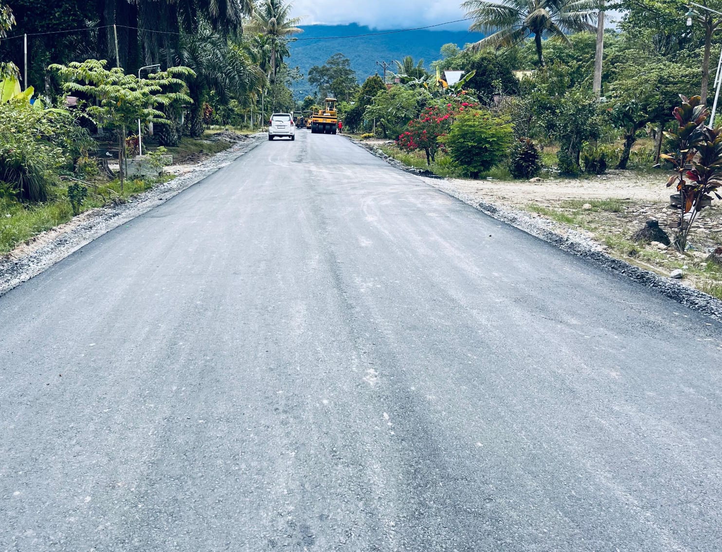 “Pekerjaan yang kami tangani memiliki panjang total 2,69 kilometer. Saat ini, sebagian ruas jalan sudah kami lakukan pengaspalan, dan sebagian lagi masih dalam tahap pemadatan LPA (Lapis Pondasi Agregat) dan persiapan produk aspal AC-WC,” jelas Adi GS kepada media.