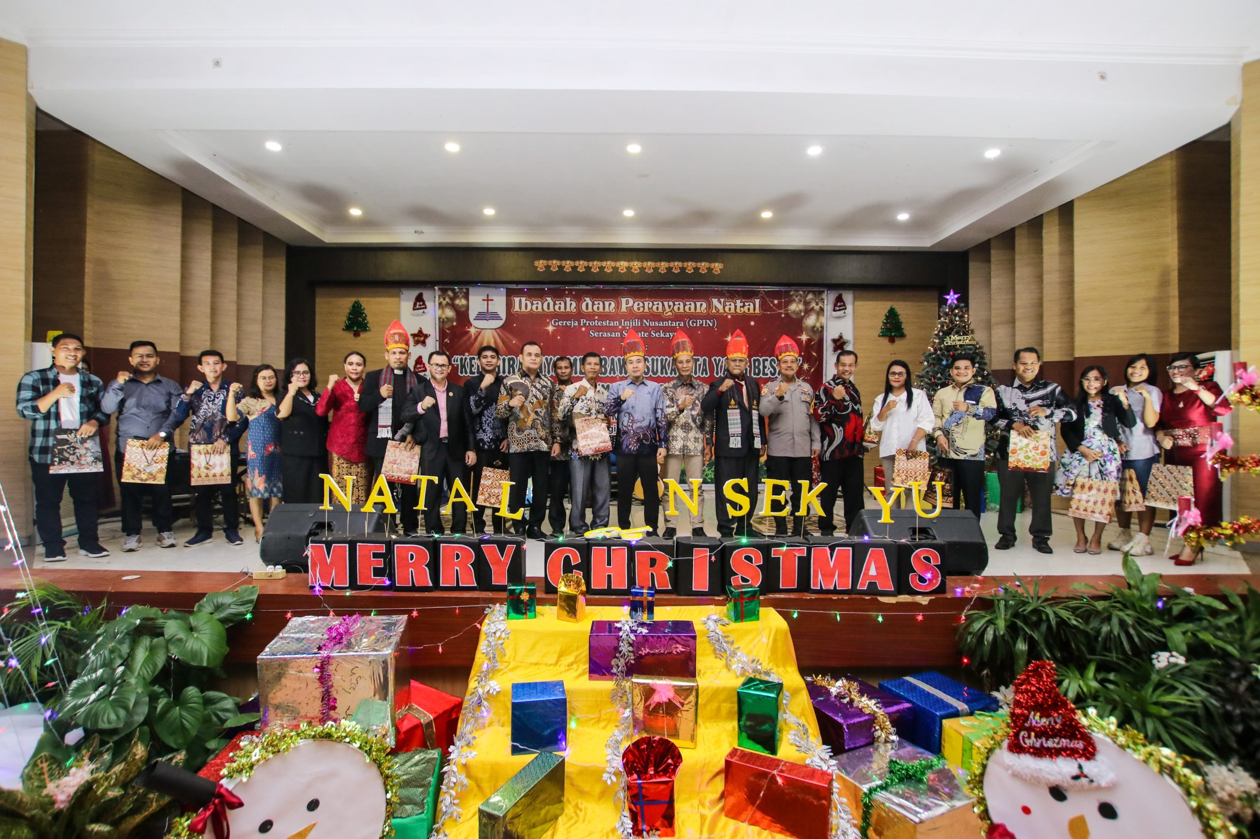 Perayaan Natal Umat Kristiani Gereja Protestan Injili Nusantara (GPIN) Serasan Sekate Sekayu tahun 2024 berlangsung meriah dan penuh sukacita di Gedung Dharma Wanita Sekayu, Rabu (11/12/2024) malam.