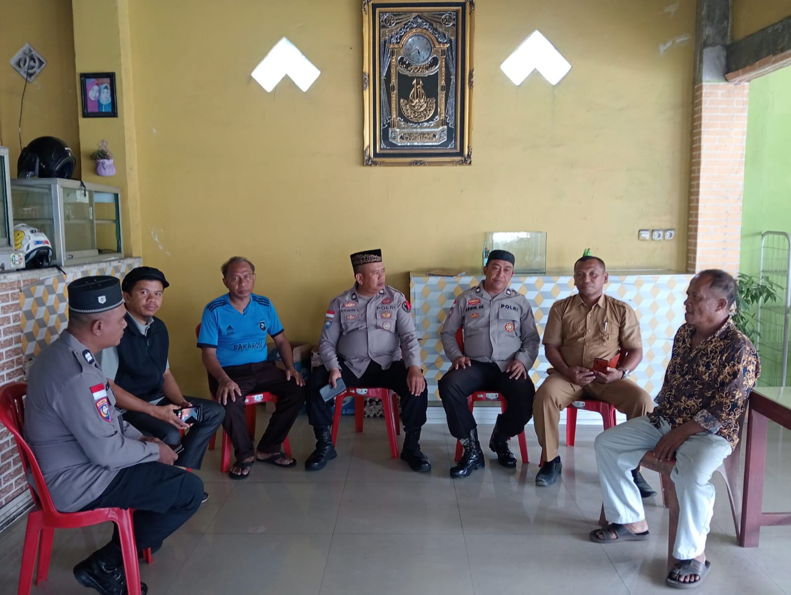 Tim Da’i Polri, yang terdiri dari Aiptu Erwin L., Aiptu Irwan, Aiptu Zulham dan Aiptu Arwin Ab., bertemu langsung dengan Sekdes Desa Toboli, Muhammad Sabik, S.Pd.I. Pertemuan ini bertujuan untuk membangun kerjasama dengan perangkat desa dalam upaya menangkal masuknya paham radikal dan intoleran serta untuk memastikan penyelenggaraan Pilkada berjalan aman, damai dan kondusif.
