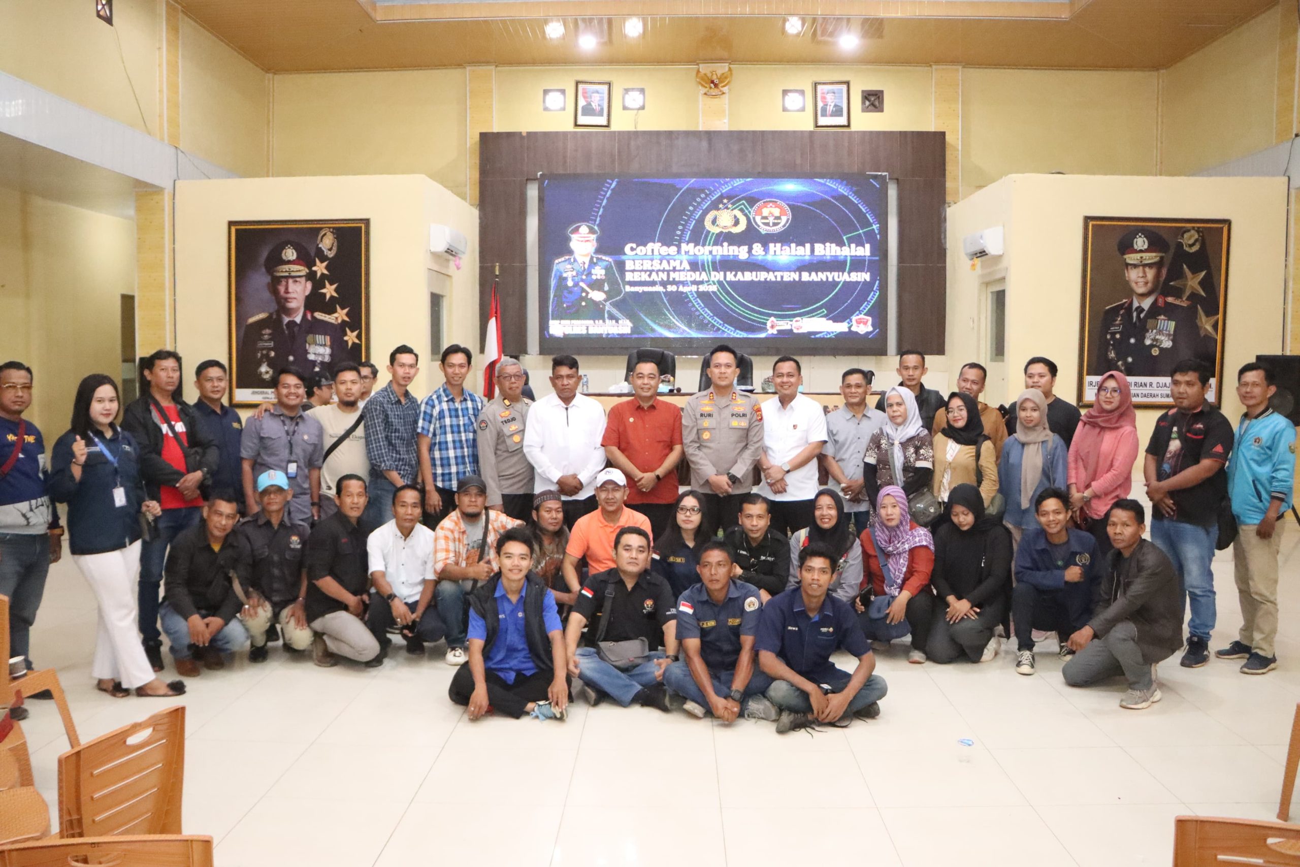 Pererat silaturahmi, Polres Banyuasin menggelar Coffee Morning dan Halal Bihalal bersama dengan puluhan wartawan yang bertugas di Kabupaten Banyuasin, yang berlangsung di Gedung Aula Sanika Satyawada Mapolres Banyuasin, Rabu (30/4).*