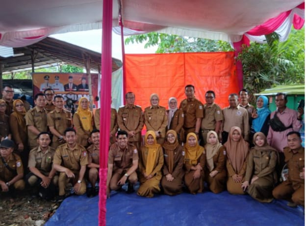 Wakil Bupati Banyuasin Netta Indian, S.P. didampingi Asisten I Bidang Pemerintah dan Kesra Dr. IR. Izro Maita, M.M menghadiri peresmian Bank Sampah Unit Moutasa di Desa Sungai Pinang Kecamatan Rambutan pada Senin (26/05/2025).