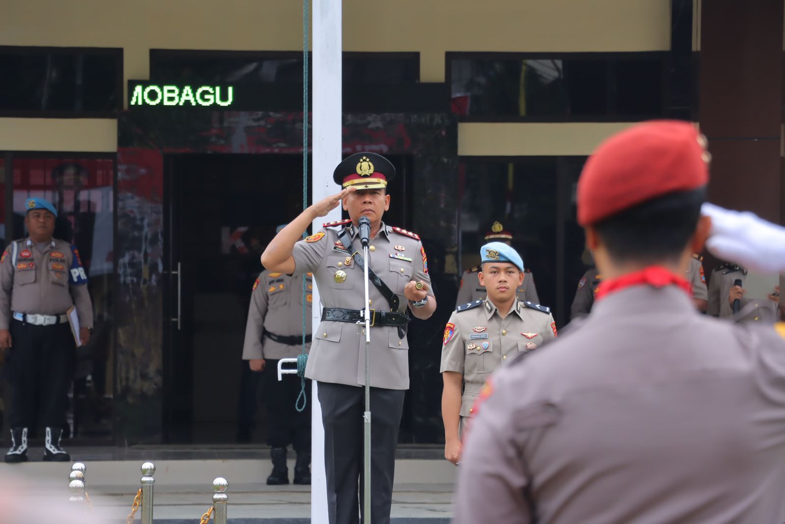 Polres Kotamobagu menggelar upacara peringatan Hari Juang Polri Tahun 2025 di halaman Mapolres, Kamis (21/8/2025). Upacara berlangsung khidmat dengan dipimpin langsung Kapolres Kotamobagu, AKBP Irwanto S.I.K., M.H.