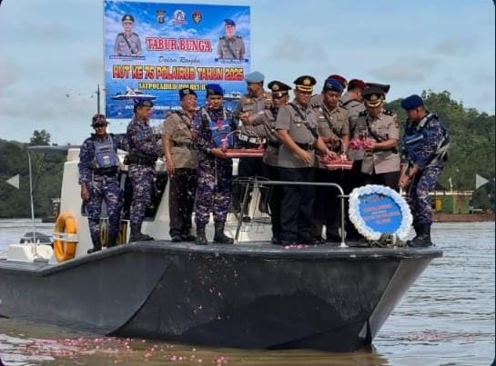 Satuan Polairud Polres Berau menggelar upacara tabur bunga di Perairan Sungai Segah dalam rangka memperingati Hari Ulang Tahun ke-75 Polairud Tahun 2025, Selasa (25/11/2025). Kegiatan berlangsung khidmat dan dipimpin Kabagops Polres Berau, Kompol Noor Dhianto, serta dihadiri pejabat utama Polres Berau, para Kapolsek jajaran, perwira, dan seluruh personel Sat Polairud.