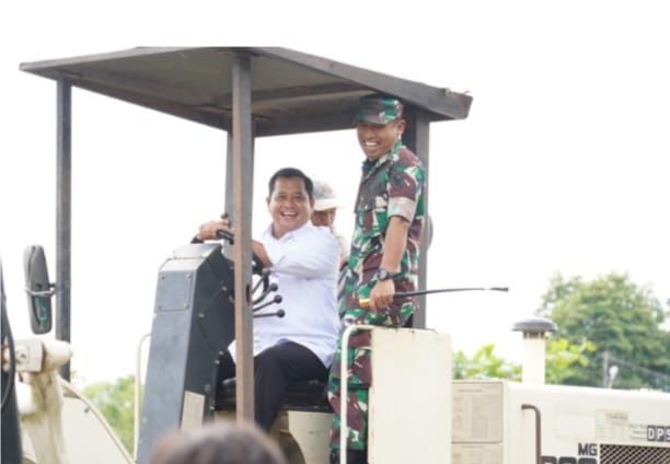Bupati Banyuasin Dr. H. Askolani, SH., MH Bersama Kodim 0430/Banyuasin Letkol. Arh. Pridjambodo melaunching kawasan kompi produksi bersama Pemkab Banyuasin di halaman Rusunawa Pemerintah kabupaten Banyuasin, (Senin 26/05).