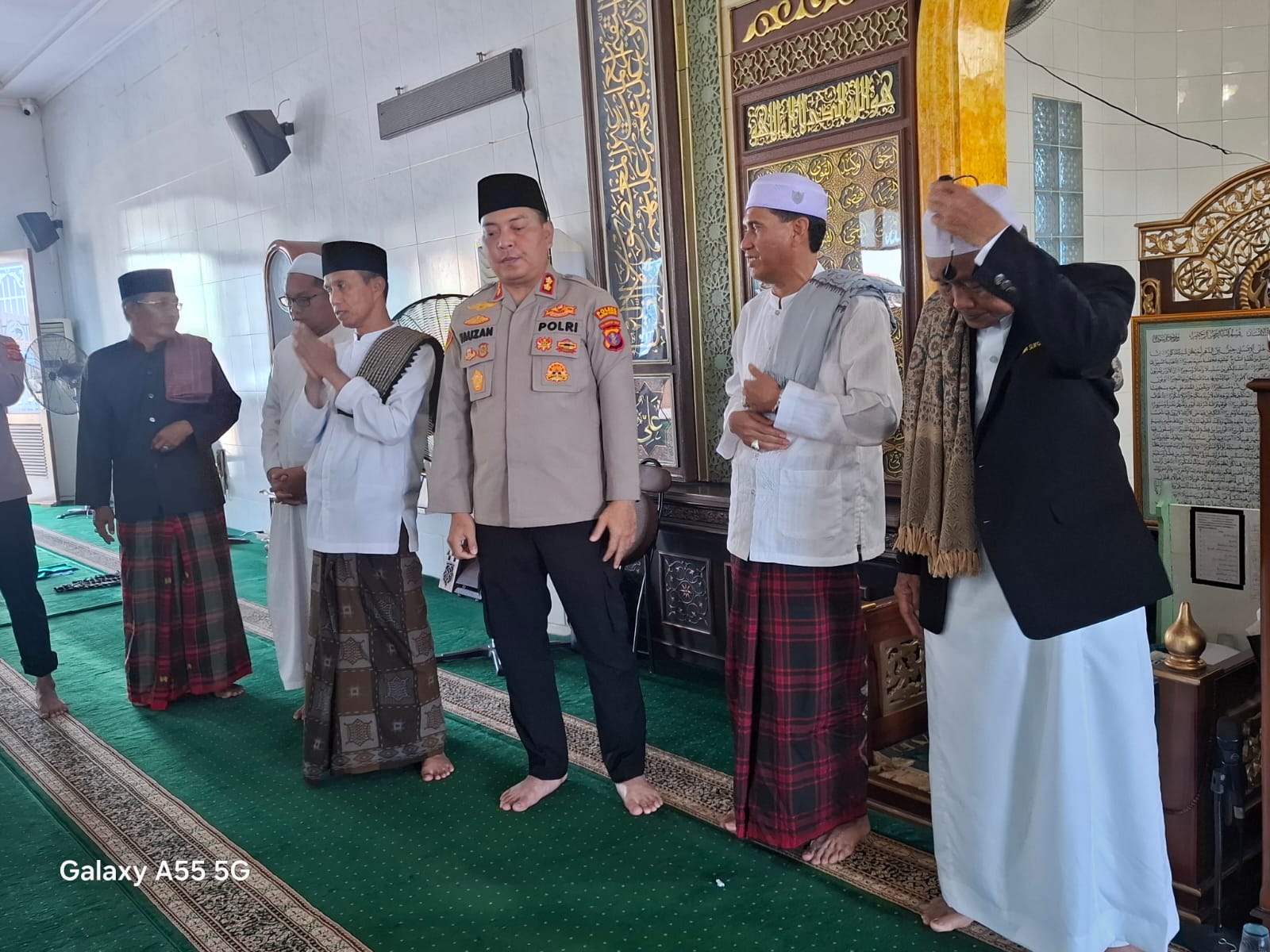 Kapolres Kutai Timur AKBP Fauzan Arianto, SH, SIK, MH. menjalin silaturahmi dengan tokoh agama di kecamatan sangkulirang bersama tokoh agama sekaligus imam Masjid AR Rahman, KH.Ismail Algam di Desa Benua Baru ilir, Kecamatan Sangkulirang, Kabupaten Kutai Timur, Jumat (29/8/2025). Dalam kunjungan di kecamatan Sangkulirang tersebut, Kapolres Kutai Timur didampingi Oleh PJU Polres Kutai Timur dan Kapolsek Sangkulirang. Pertemuan berlangsung di Masjid Ar Rahman sekaligus dilanjutkan dengan sholat Jumat Berjamaah di Masjid Ar Rahman.