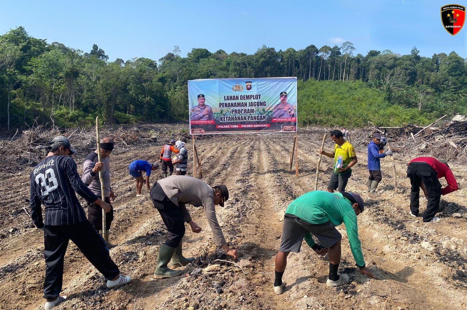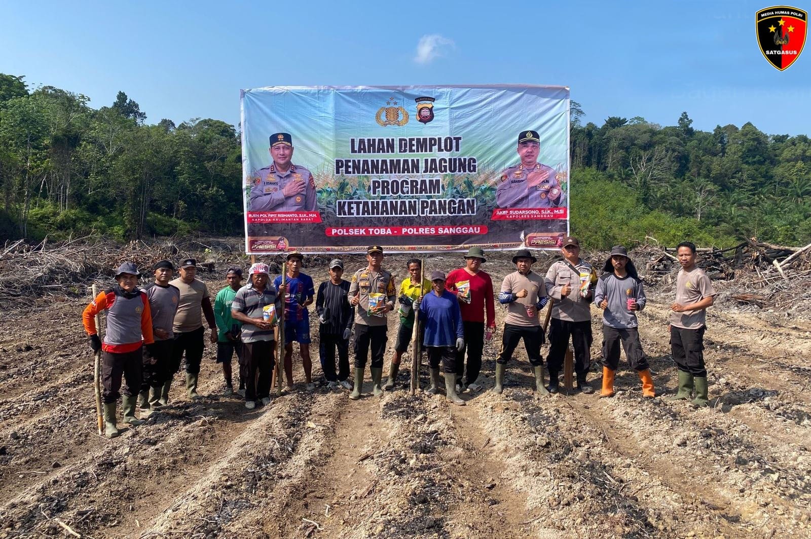 Dalam upaya memperkuat ketahanan pangan nasional dan mendukung program strategis pemerintah pusat, Polsek Toba bersama kelompok tani setempat melaksanakan penanaman jagung di lahan demplot ke-3 yang berlokasi di Dusun Modang, Desa Bagan Asam, Kecamatan Toba, Kabupaten Sanggau, Senin (28/7/2025).