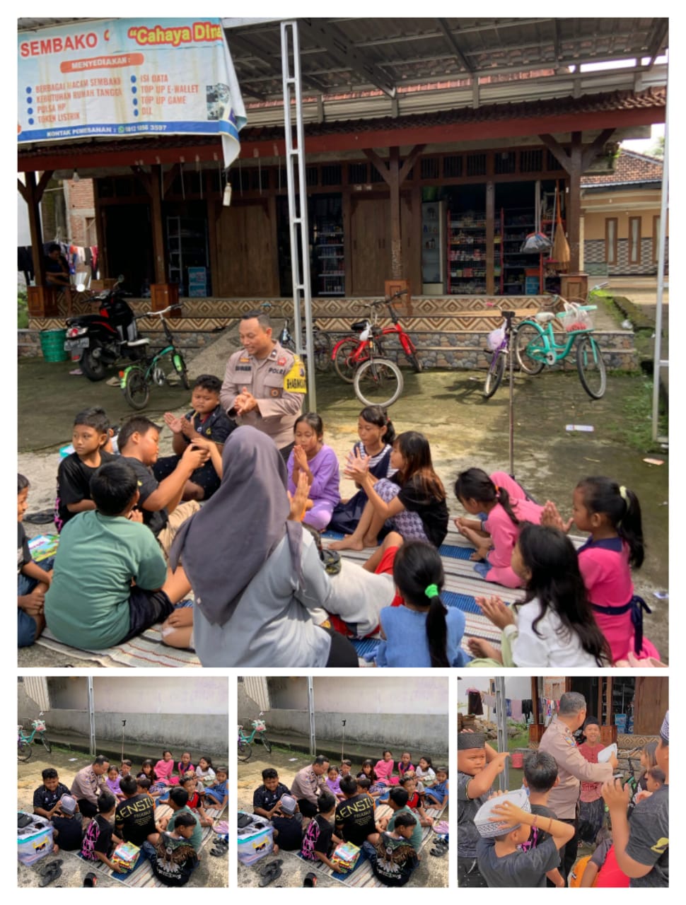 Dengan ramah, Aipda Sugimin menyapa dan mengajak anak-anak yang biasanya menghabiskan waktu libur dengan bermain, untuk membaca buku.