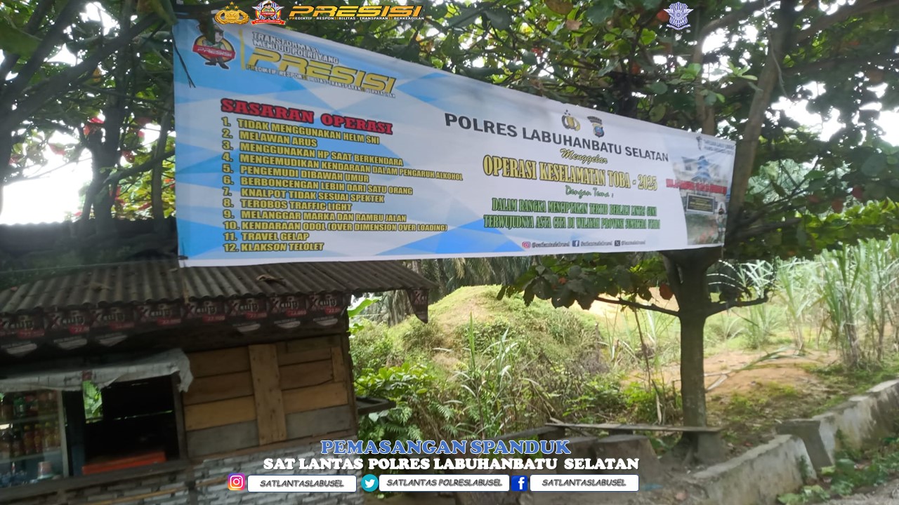 Satuan Lalu Lintas (Sat Lantas) Polres Labuhanbatu Selatan melaksanakan pemasangan spanduk sosialisasi Operasi Keselamatan Toba 2025 di sejumlah titik strategis di Jalur Lintas Sumatera (Jalinsum), wilayah hukum Polres Labuhanbatu Selatan. Kegiatan ini bertujuan untuk meningkatkan kesadaran masyarakat terhadap pentingnya keselamatan berlalu lintas.