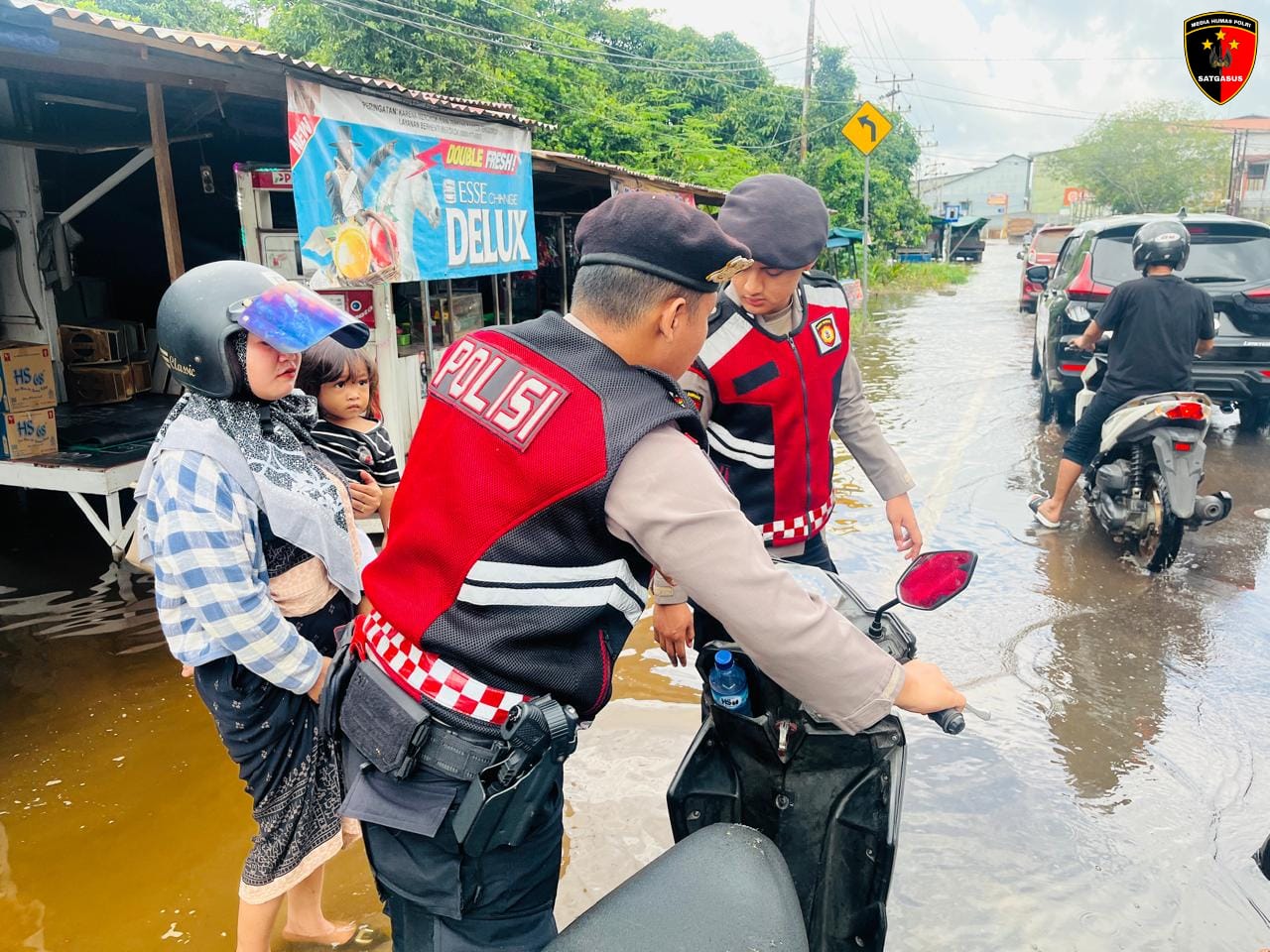 Dengan kegiatan tersebut, kehadiran personel Sat Samapta di lapangan mendapat apresiasi dari warga yang merasa terbantu dan terlindungi saat melintasi area banjir.( Lies )