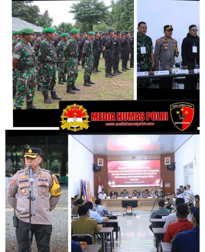 Ratusan aparat gabungan TNI – Polri di bawah pimpinan Kapolres Lampung Tengah, Polda Lampung, AKBP Andik Purnomo Sigit, S.H., S.I.K, M.M dikerahkan untuk mengamankan jalannya rapat pleno terbuka rekapitulasi hasil Pemilihan Kepala Daerah (Pilkada) Tahun 2024 tingkat Kabupaten. Senin (2/12) pagi