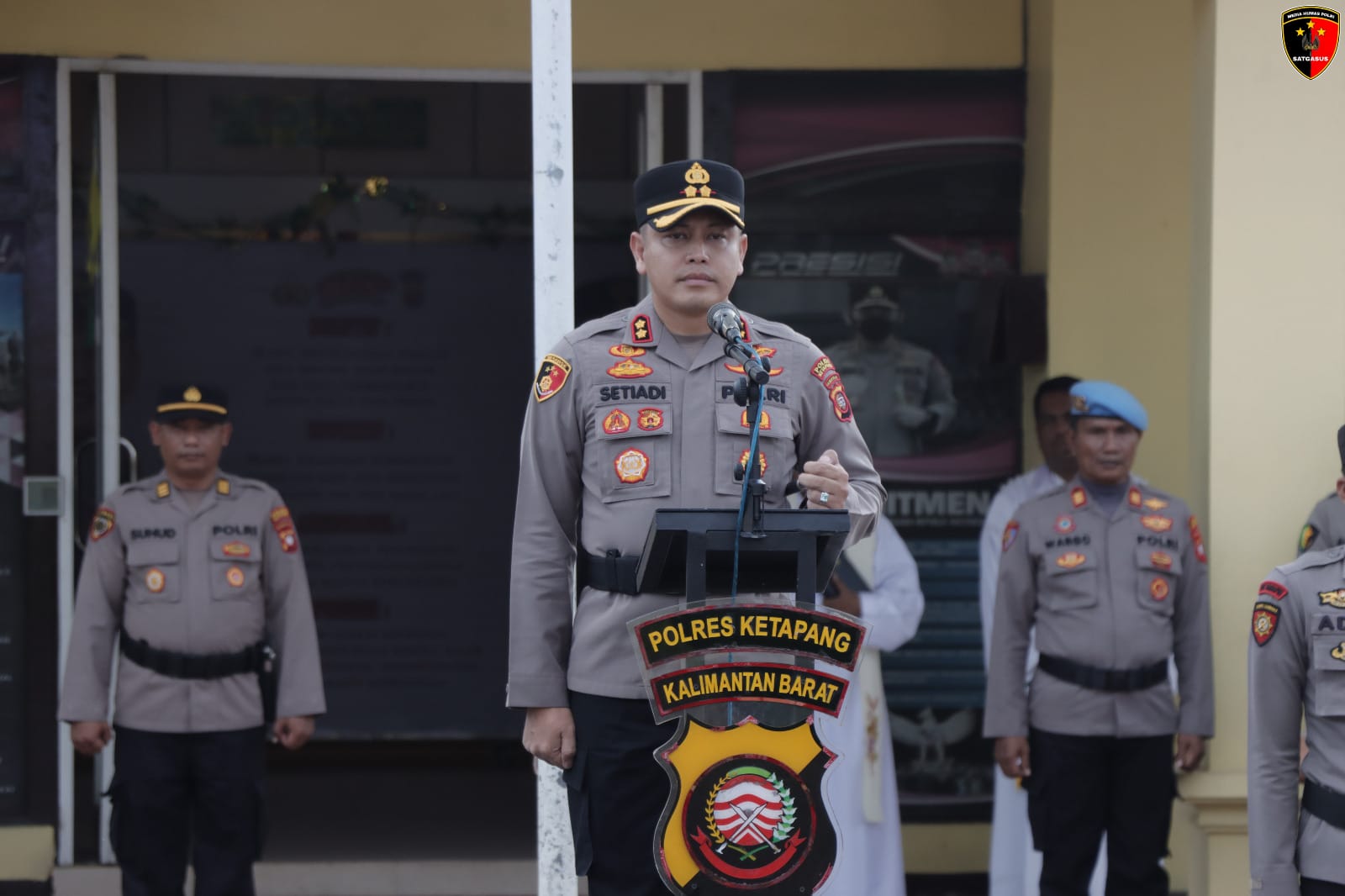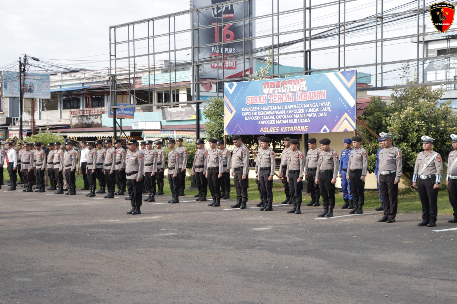 Polda Kalbar, Kapolres Ketapang, AKBP Setiadi, S.H., S.I.K., M.H., memimpin langsung upacara serah terima jabatan sejumlah pejabat utama di lingkungan Polres Ketapang, yang digelar di Halaman Mapolres Ketapang di Jalan Brigjend Katamso Nomor 01 Ketapang, Kamis sore (08/05/2025). Dalam amanatnya, AKBP Setiadi menekankan pentingnya menjaga integritas dan profesionalisme sebagai anggota Polri, di manapun dan kapanpun bertugas.