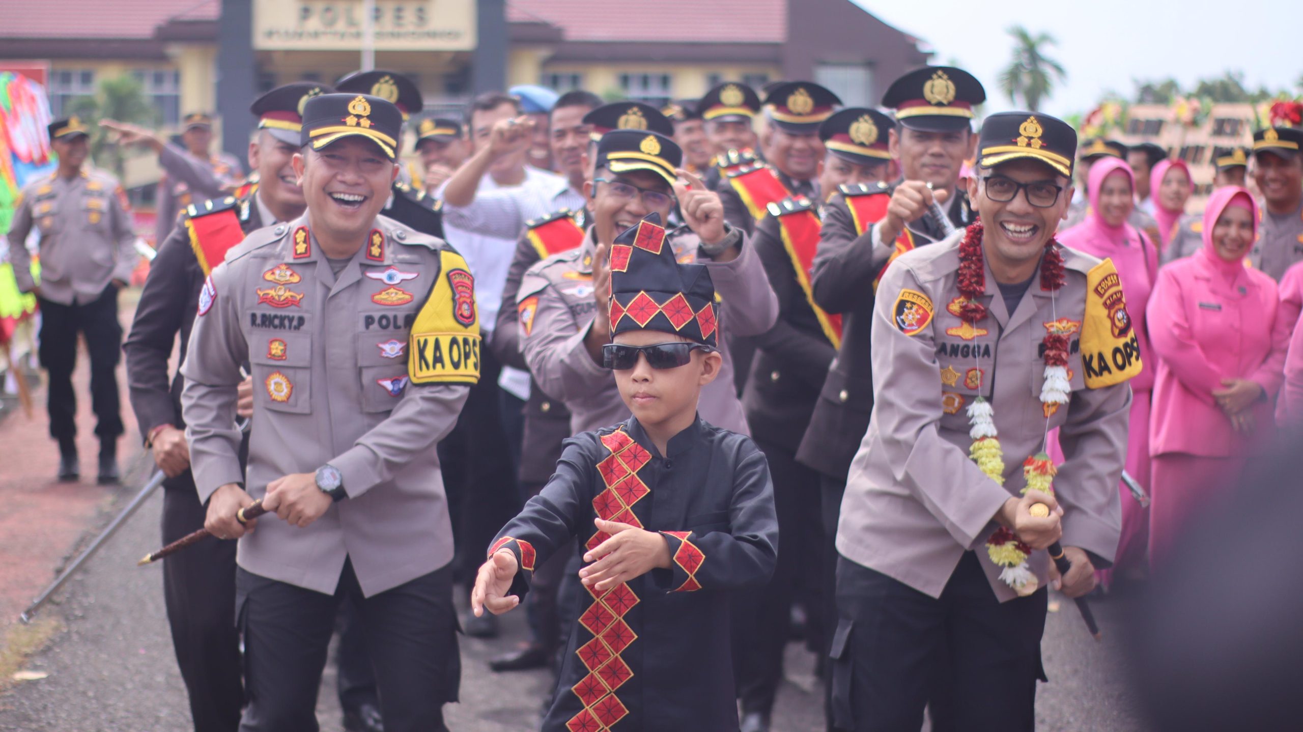 Kegiatan diawali dengan penyambutan Kapolres baru di halaman Mapolres Kuansing, Jalan Proklamasi, Kelurahan Sungai Jering, Kecamatan Kuantan Tengah. Kedatangan AKBP Raden Ricky disambut secara adat dan penuh kehormatan oleh AKBP Angga beserta jajaran melalui rangkaian tradisi seperti tari persembahan, pengalungan bunga, pedang pora, serta penanaman pohon sebagai simbol semangat baru dan penghargaan terhadap alam.