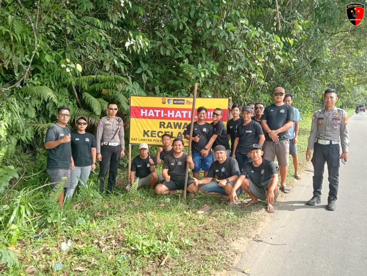 Satuan Lalu Lintas (Satlantas) Polres Sekadau bersama Komunitas Driver All Lawang Kuari memasang spanduk himbauan keselamatan berkendara di sejumlah ruas jalan utama di kota Sekadau, Minggu (19/10/2025).