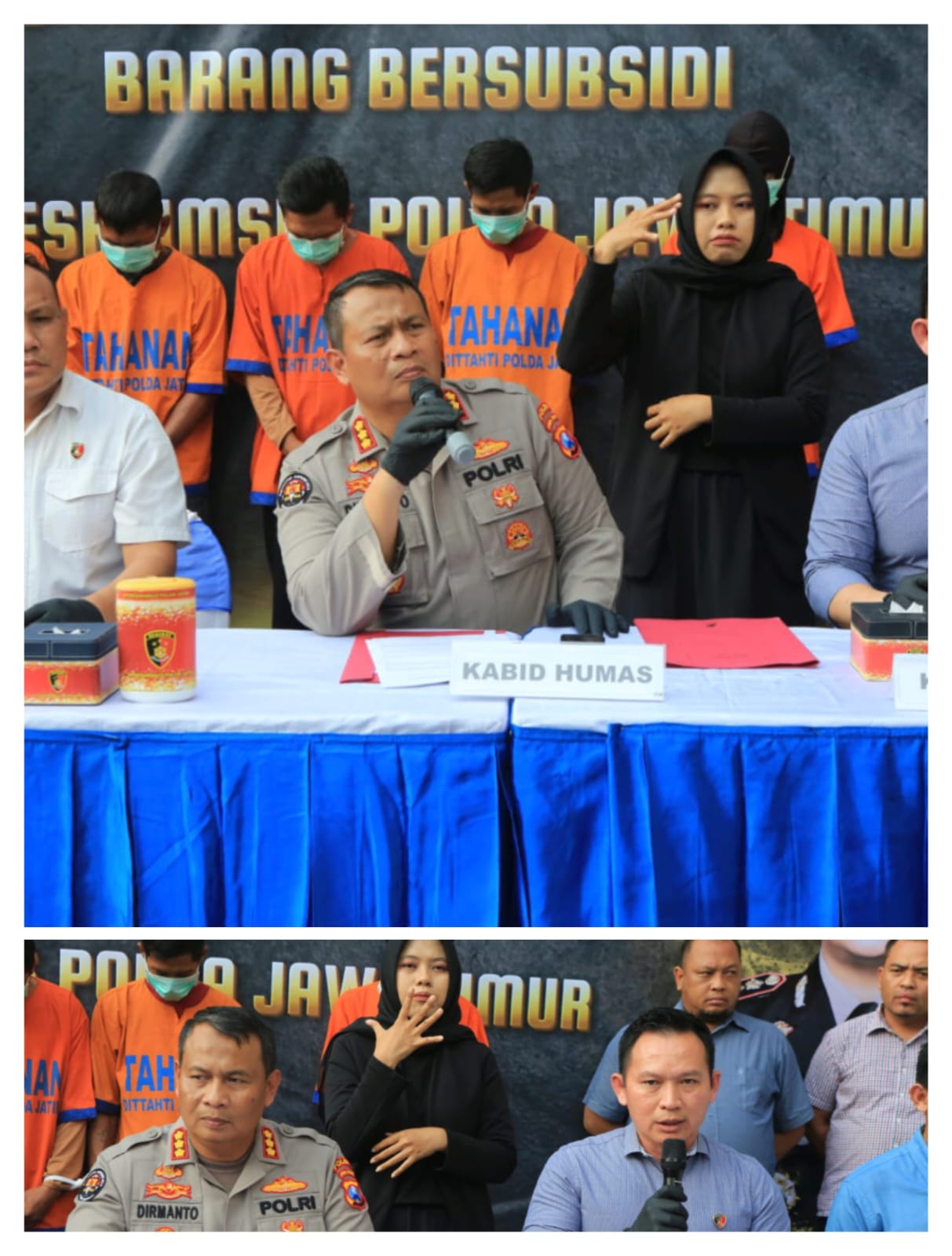 Direktorat Reserse Kriminal Khusus (Ditreskrimsus) Polda Jawa Timur berhasil mengungkap praktik pengoplosan LPG bersubsidi ukuran 3 kilogram ke tabung non subsidi berkapasitas 12 kilogram dan 50 kilogram di Kabupaten Jombang.