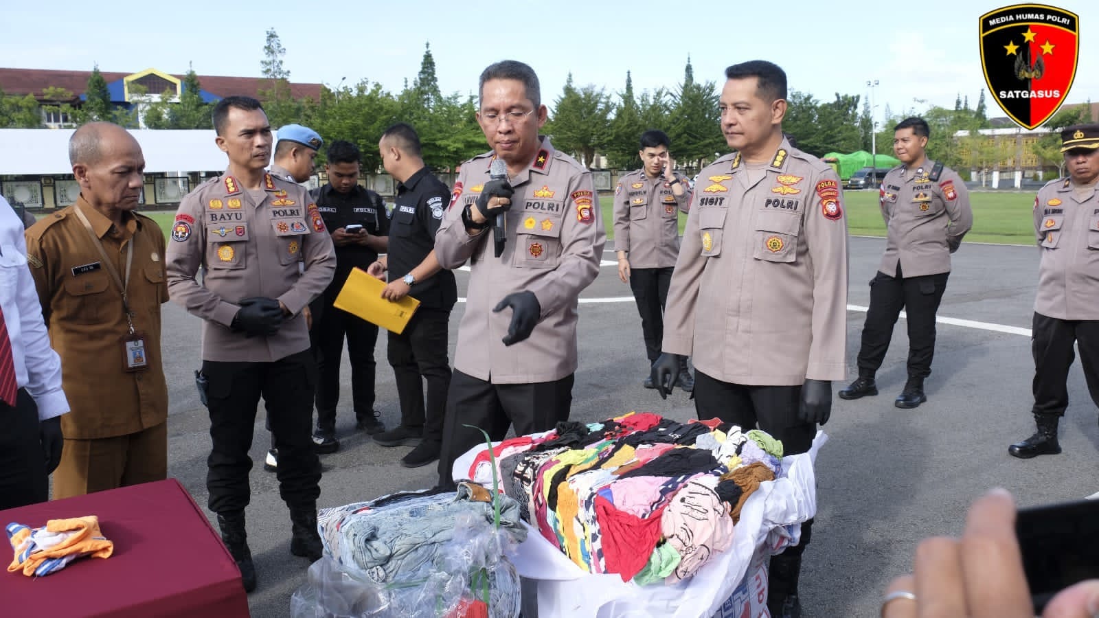 Direktorat Reserse Kriminal Khusus Polda Kalbar menyelenggarakan Konferensi Pers terkait Pengungkapan Kasus Importasi Pakaian Bekas tanpa ijin, pada Senin (20/01/2025).