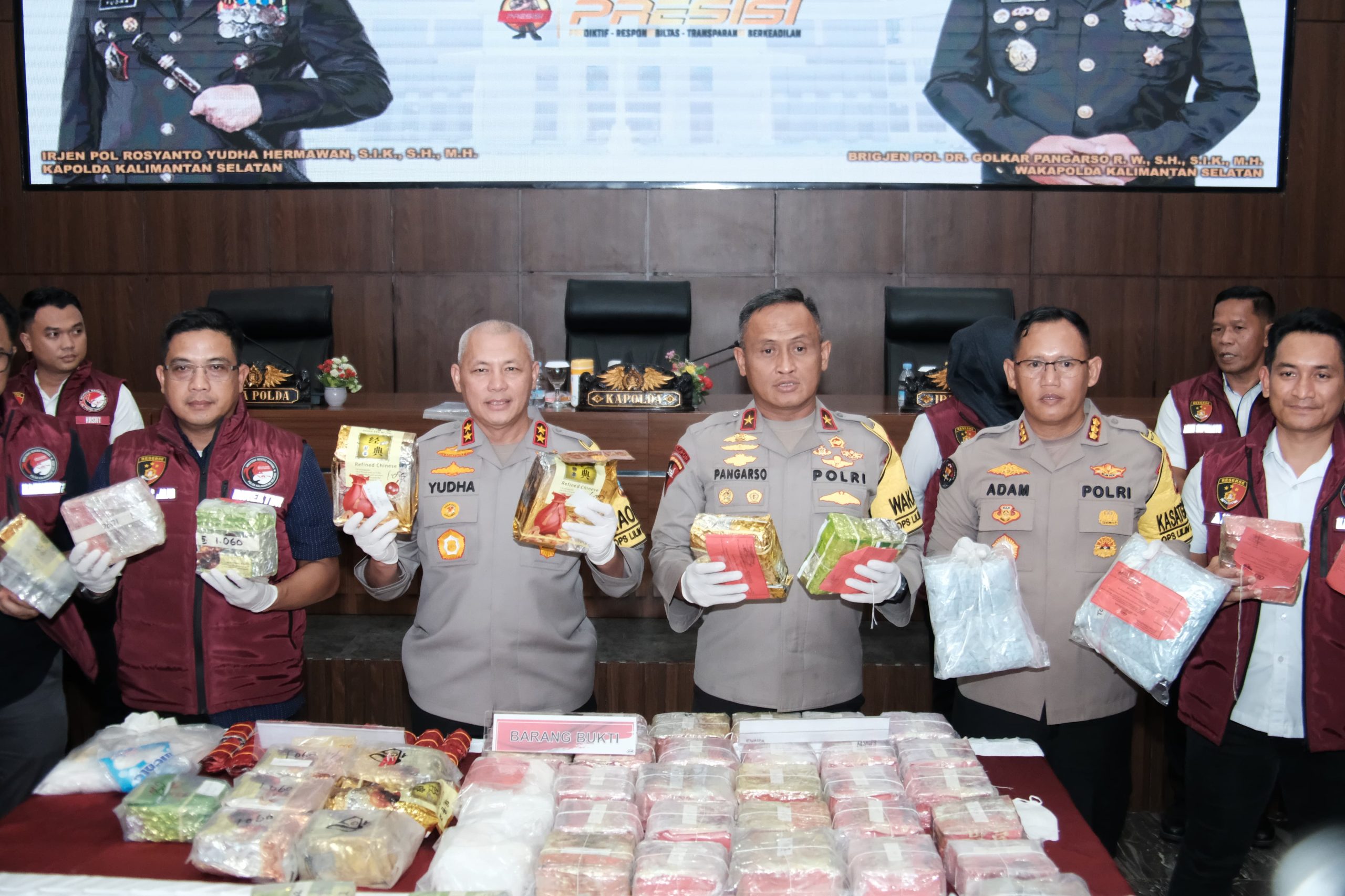 Kapolda Kalsel Irjen Pol Rosyanto Yudha Hermawan menerangkan, tahun 2023 Polda Kalsel dan Jajaran berhasil mengamankan pelaku narkoba sebanyak 1.127 pengedar, 475 kurir, 98 pemakai, dan 63 bandar. Dengan jumlah barang bukti yang disita sabu sebanyak 151.242,88 gram, XTC 9.941½ butir dan 50,97 gram.