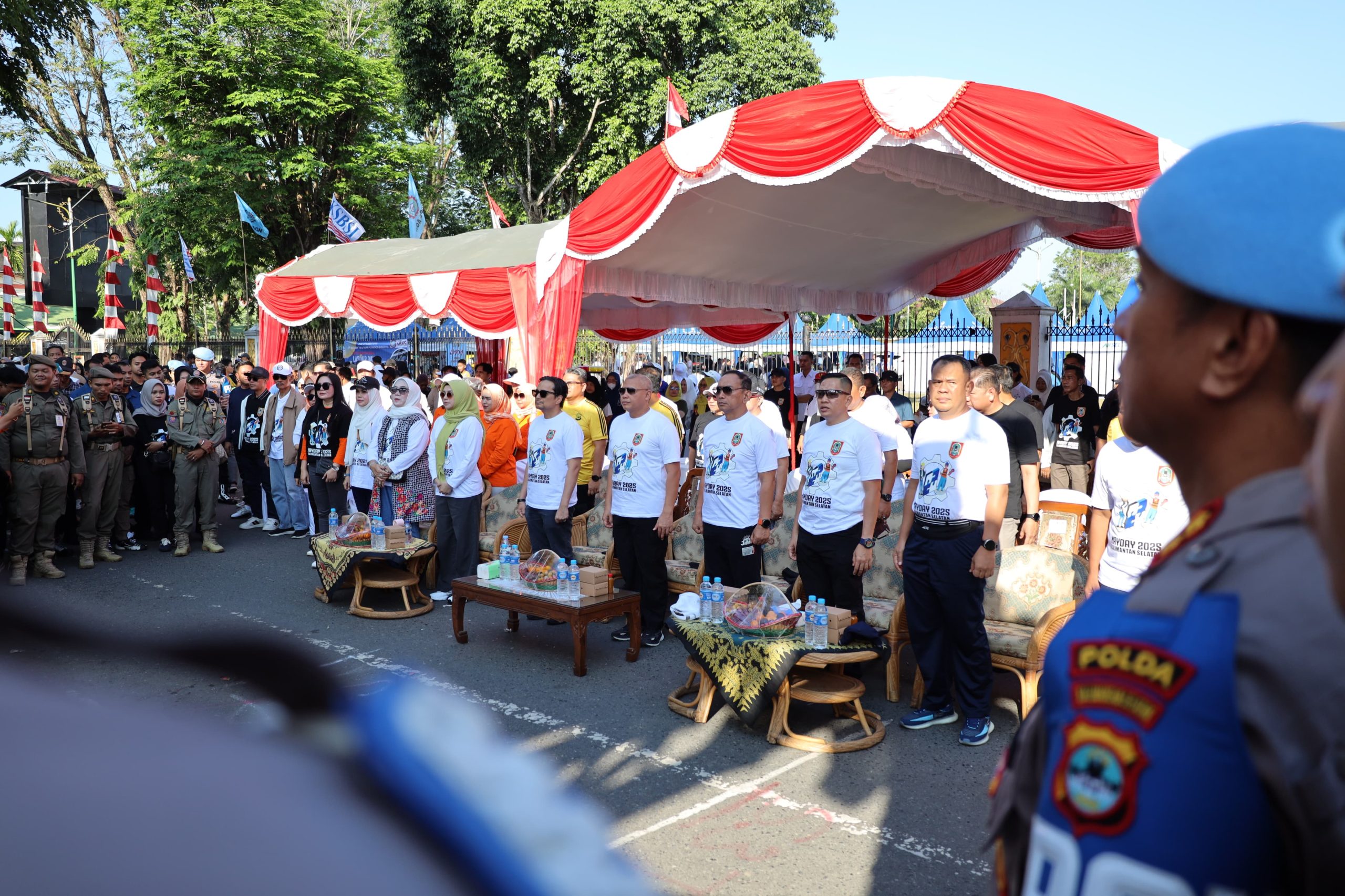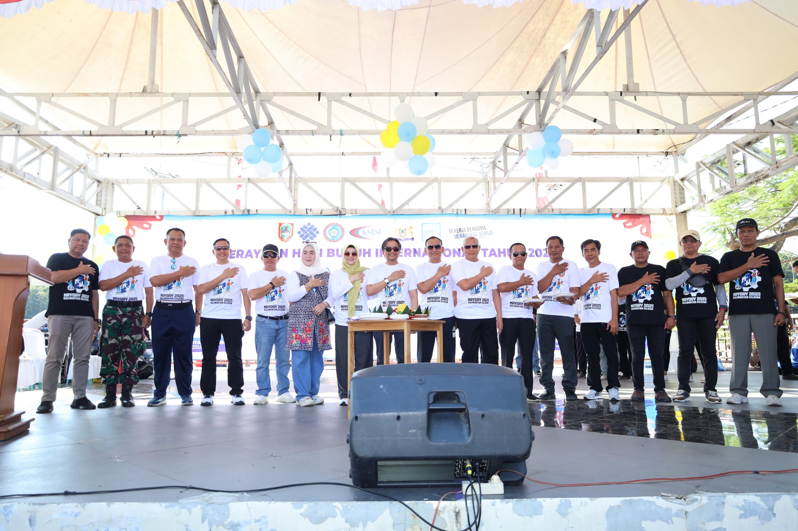 Dalam perayaan May Day yang berlangsung di Halaman Kantor Gubernur Lama, Banjarmasin, selain Kapolda Kalsel turut hadir juga Wakil Gubernur Kalsel, Danrem 101/Antasari, Danlanal Banjarmasin, Kabinda Kalsel, Pj. Sekda Provinsi Kalsel, Irwasda Polda Kalsel, Pejabat Utama Polda Kalsel, Kapolresta Banjarmasin, Ketua DPD KSPSI Kalsel, Ketua DPS KSBSI Kalsel, Kepala BPJS Ketenagakerjaan Banjarmasin, dan Ketua Kadin Banjarmasin. ( Irfani)