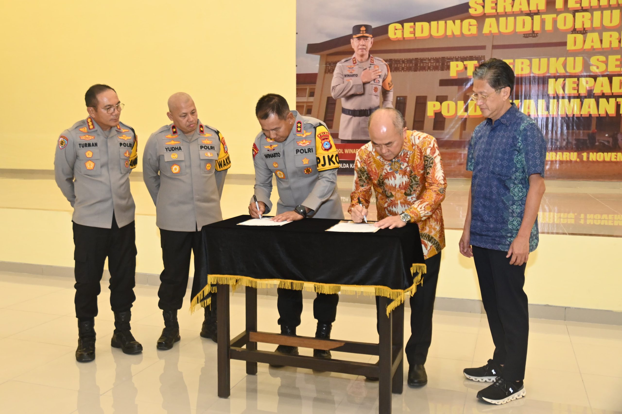 Kepolisian Daerah Kalimantan Selatan (Polda Kalsel) resmi memiliki Gedung Auditorium setelah PT. Sebuku Sejaka Coal menyerahkan hibah dalam acara serah terima yang berlangsung di Polda Kalsel Banjarbaru, Jumat (1/11/2024) siang.