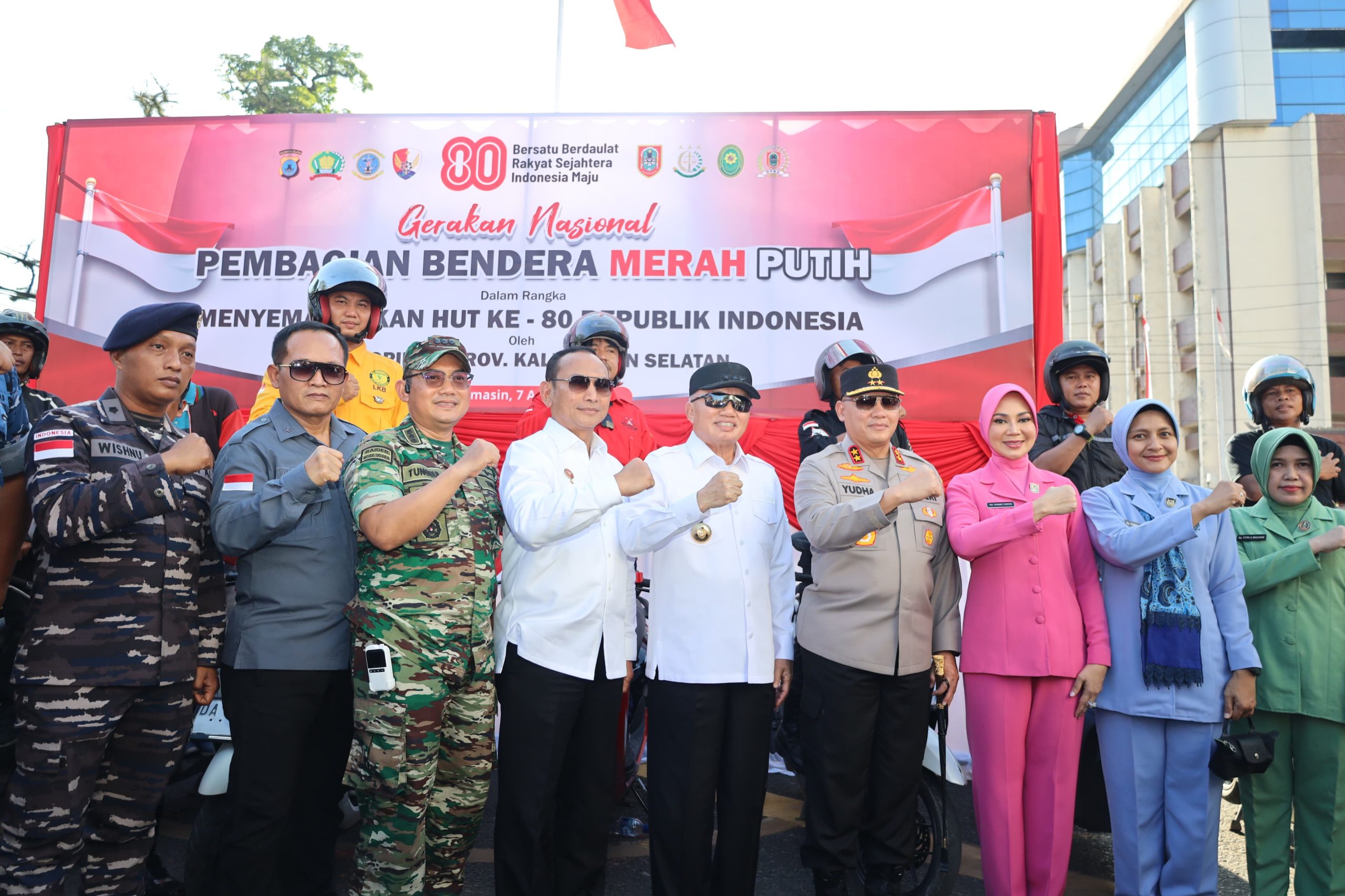 Memperingati HUT ke-80 Kemerdekaan Republik Indonesia, Polda Kalimantan Selatan (Kalsel) turut serta dalam Gerakan Nasional Pembagian Bendera Merah Putih. Kegiatan ini dilaksanakan pada Kamis (7/8/2025) pukul 16.00 WITA di Simpang Empat Hotel A, Banjarmasin, sebagai bentuk semangat kebangsaan dan cinta tanah air.