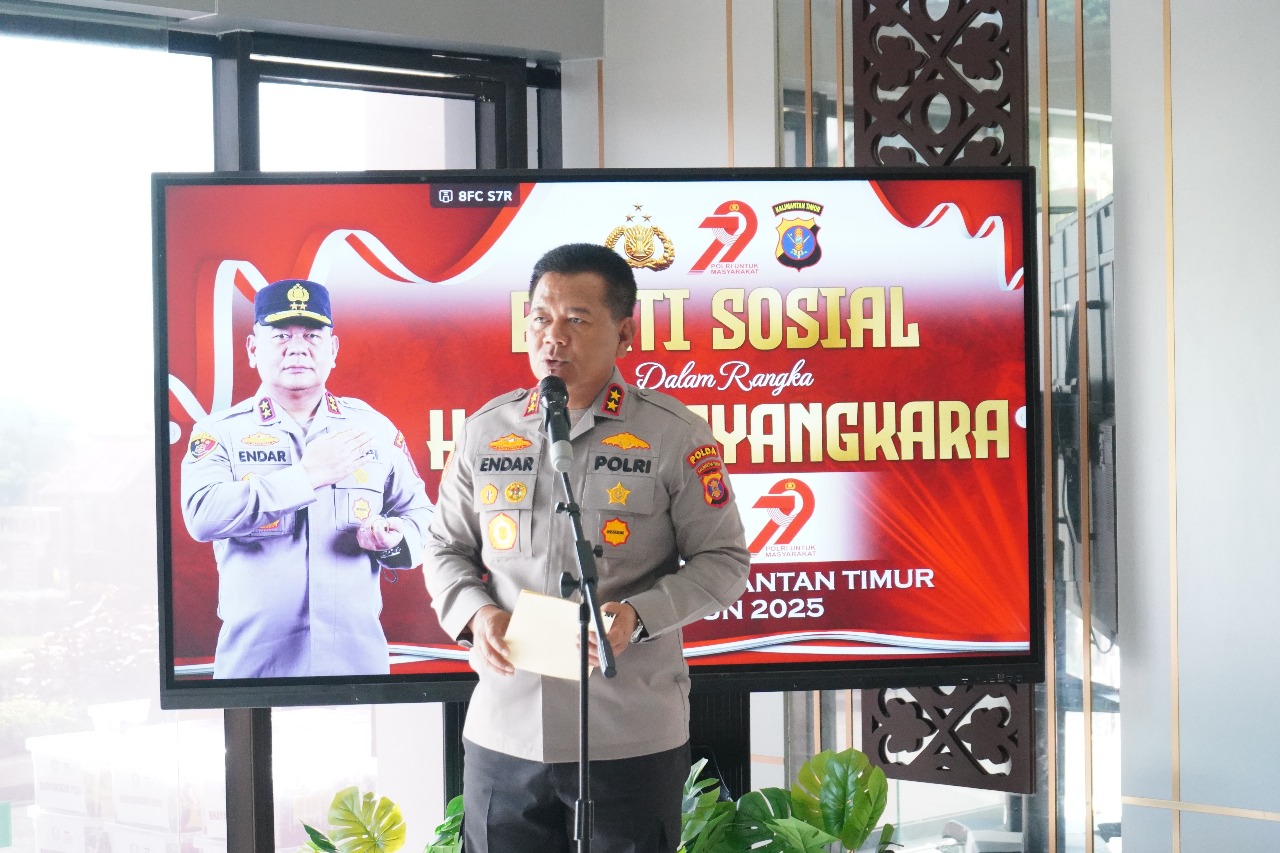 Kapolda Kalimantan Timur Irjen Pol. Endar Priantoro, S.H., S.I.K., C.F.E., M.H., dalam sambutannya menyampaikan bahwa kegiatan ini merupakan wujud nyata kehadiran Polri di tengah masyarakat, tidak hanya sebagai penjaga keamanan, tetapi juga sebagai penggerak solidaritas dan kepedulian sosial.