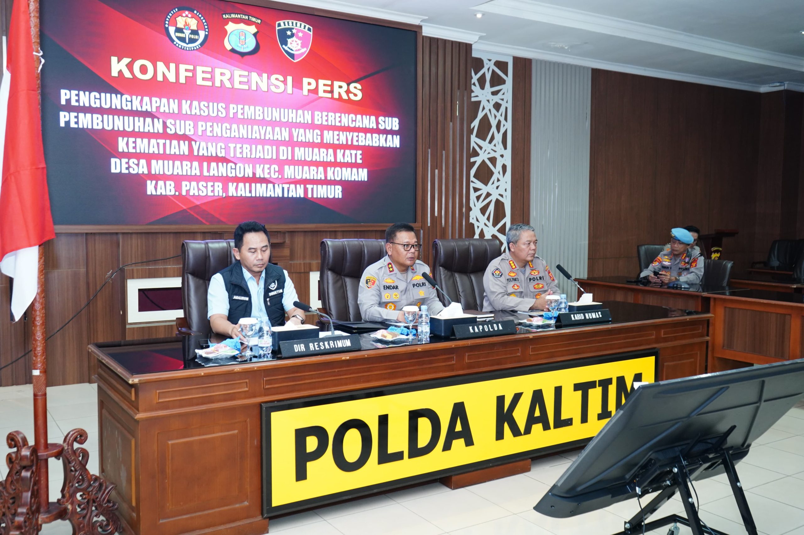 Kepolisian Daerah Kalimantan Timur (Polda Kaltim) mengungkap kasus pembunuhan berencana yang terjadi di Kecamatan Muara Komam, Kabupaten Paser. Dalam peristiwa tragis ini, satu orang dilaporkan meninggal dunia dan satu korban lainnya mengalami luka berat. Hal tersebut disampaikan Kapolda Kaltim Irjen Pol. Endar Priantoro, S.H., S.I.K., C.F.E., M.H., dalam konferensi pers di Mapolda Kaltim, Selasa (22/7/2025).