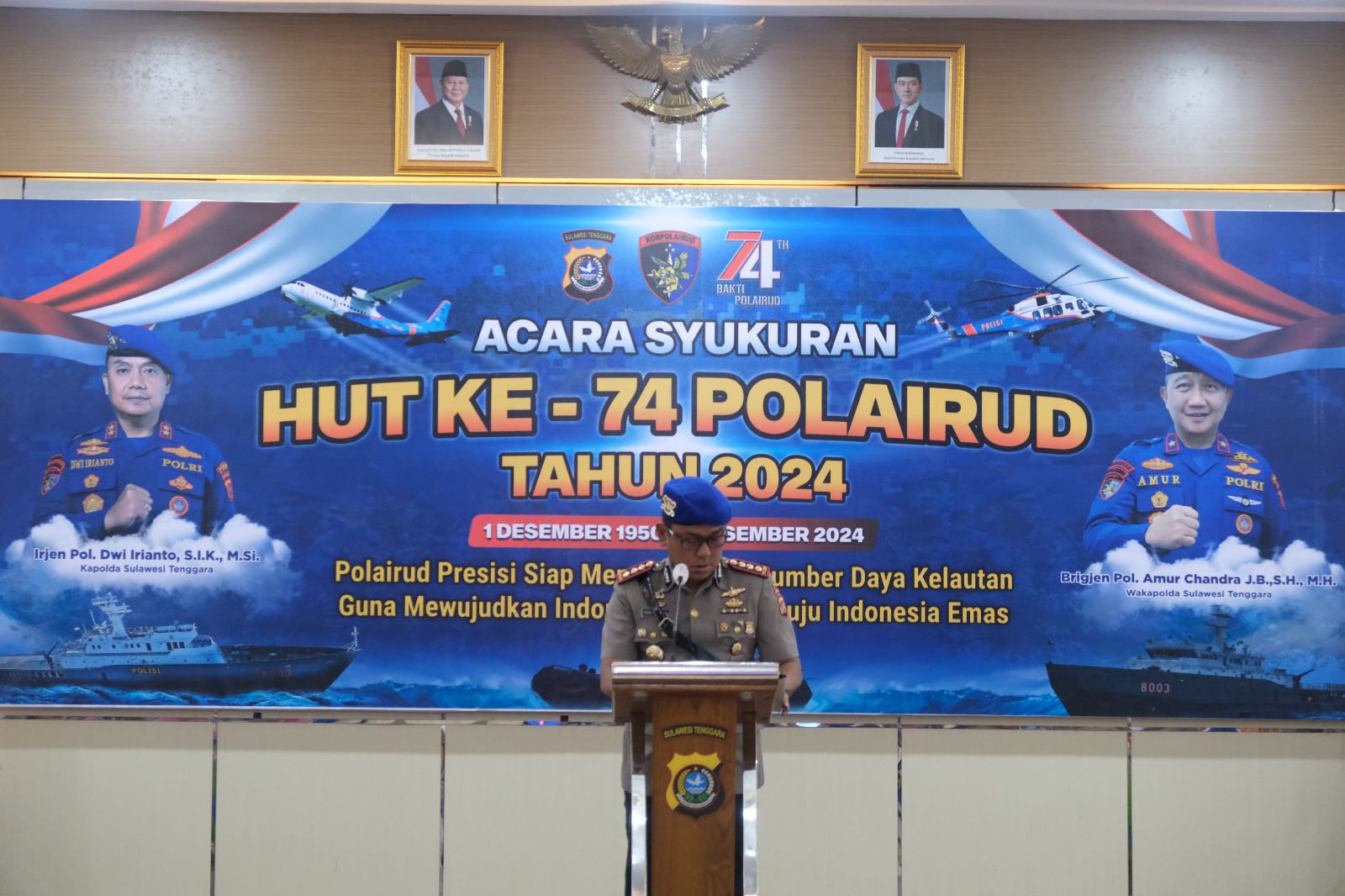 Polda Sulawesi Tenggara menggelar acara syukuran dalam rangka memperingati Hari Ulang Tahun (HUT) ke-74 Direktorat Polisi Perairan dan Udara (Ditpolairud). Acara yang berlangsung di Aula Dachara ini dibuka langsung oleh Kapolda Sultra, Irjen Pol Dwi Irianto, S.I.K., M.Si.